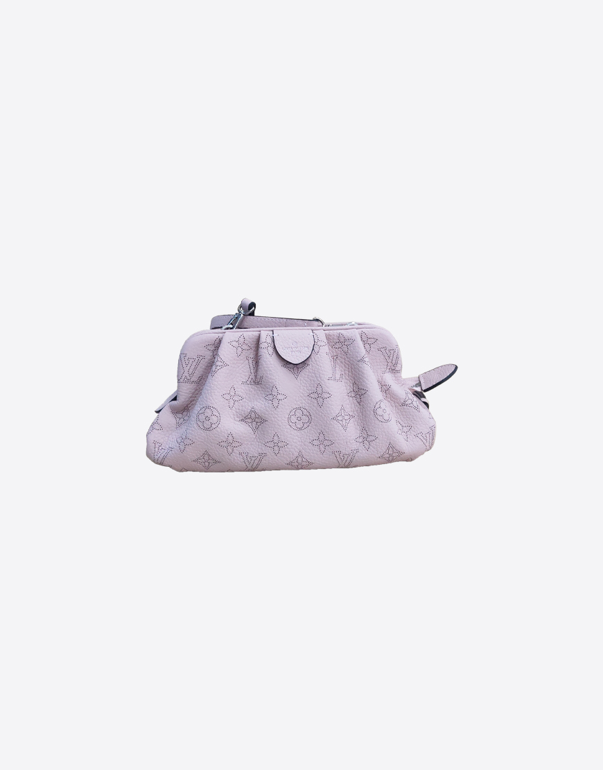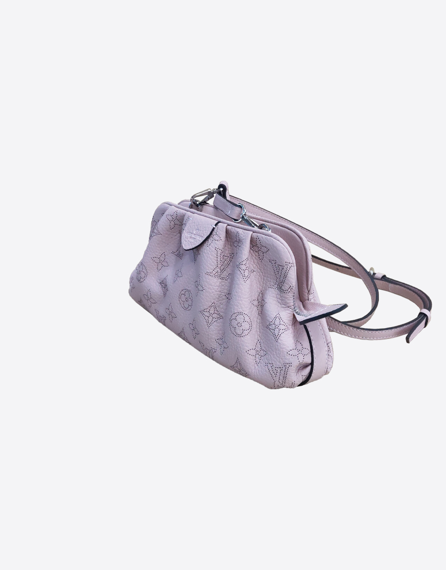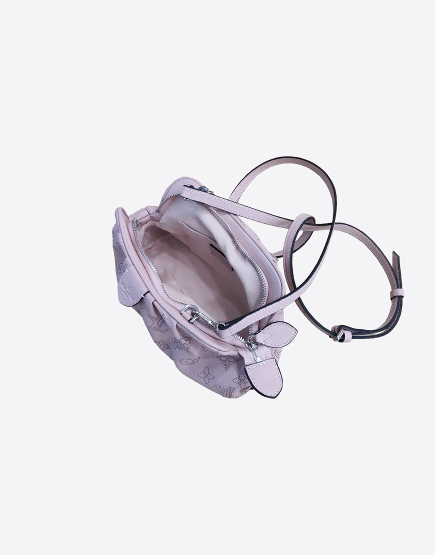 Louis Vuitton сумочка в розовой коже с логотипом, в форме мешочка.