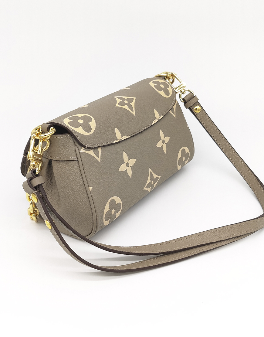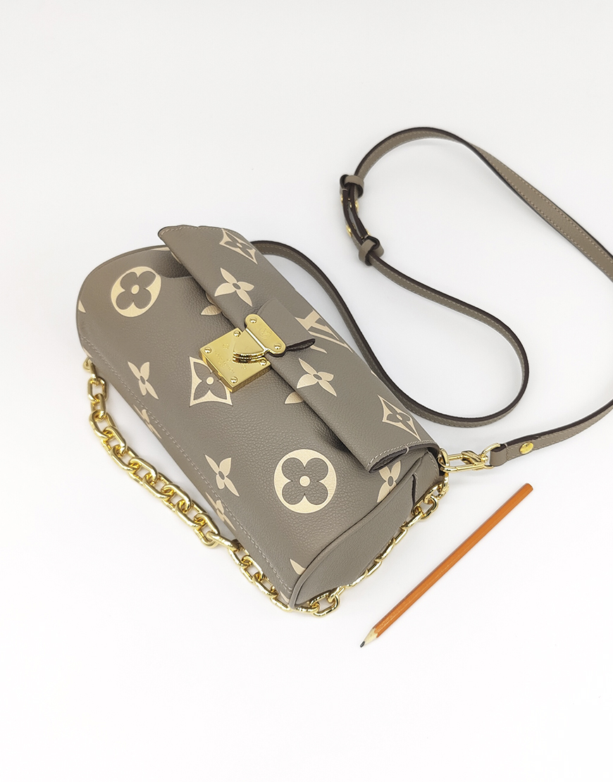 Louis Vuitton сумочка в бежевой коже с логотипом, с цепью.
