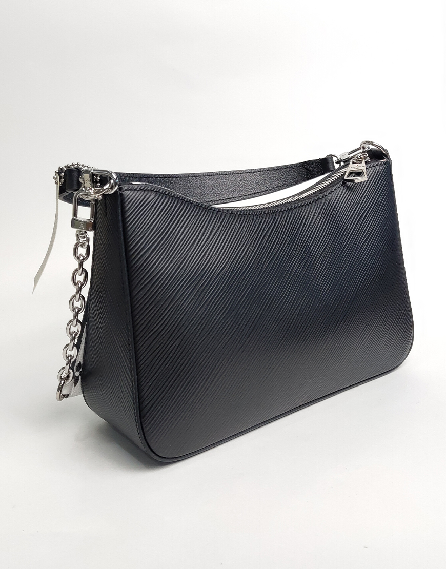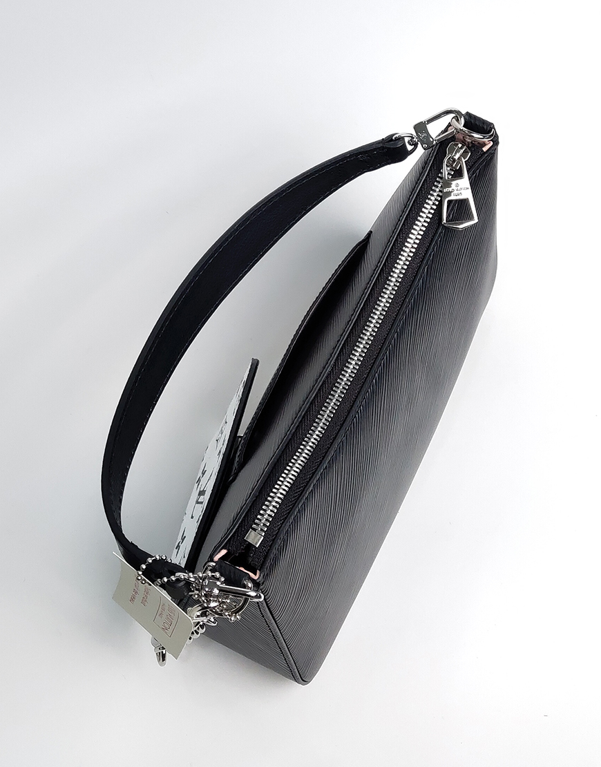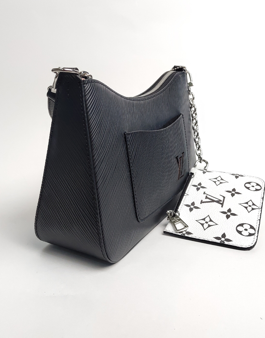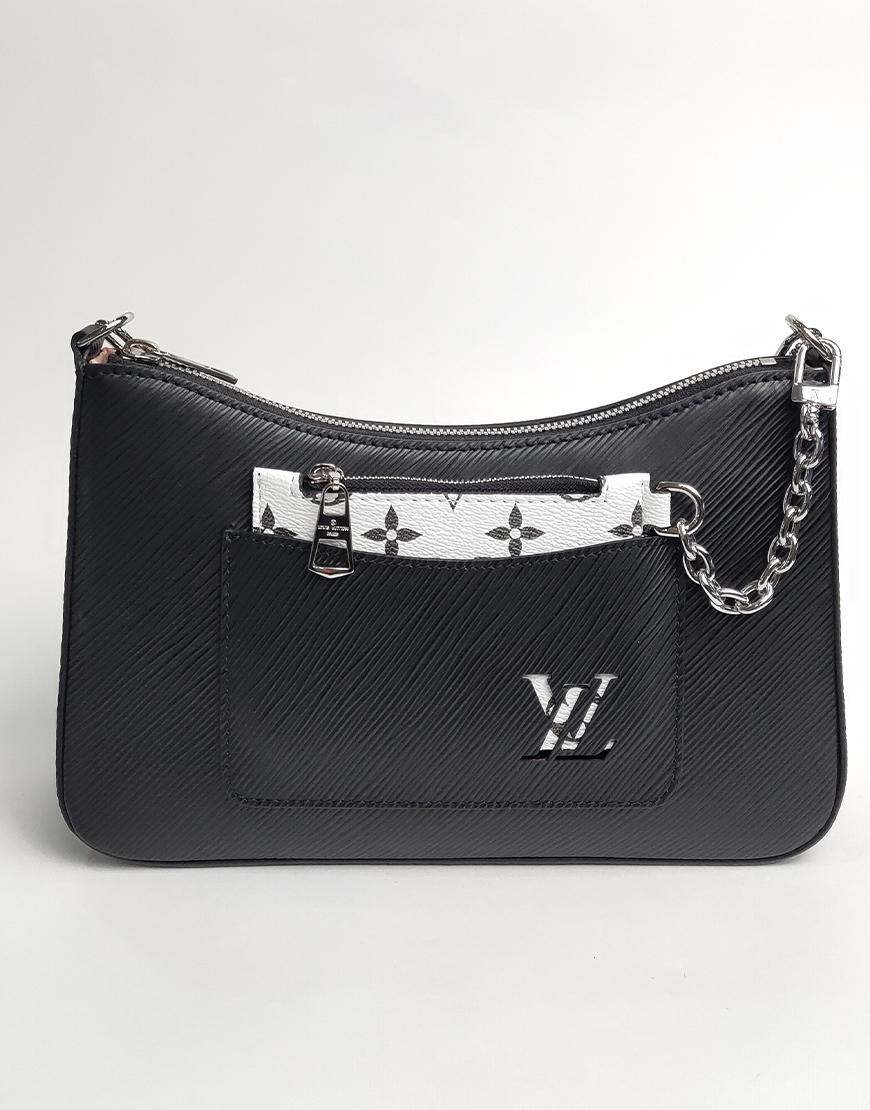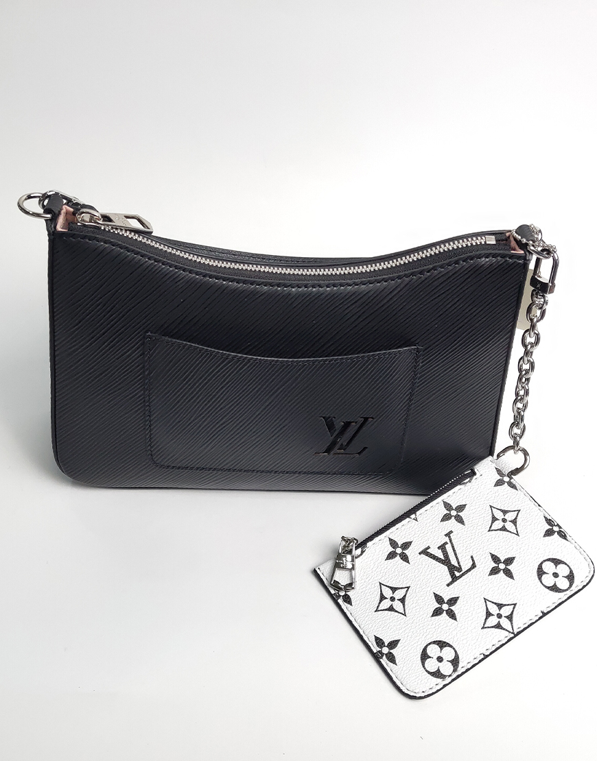 Louis Vuitton сумочка в чёрной коже с логотипом, спереди карман.