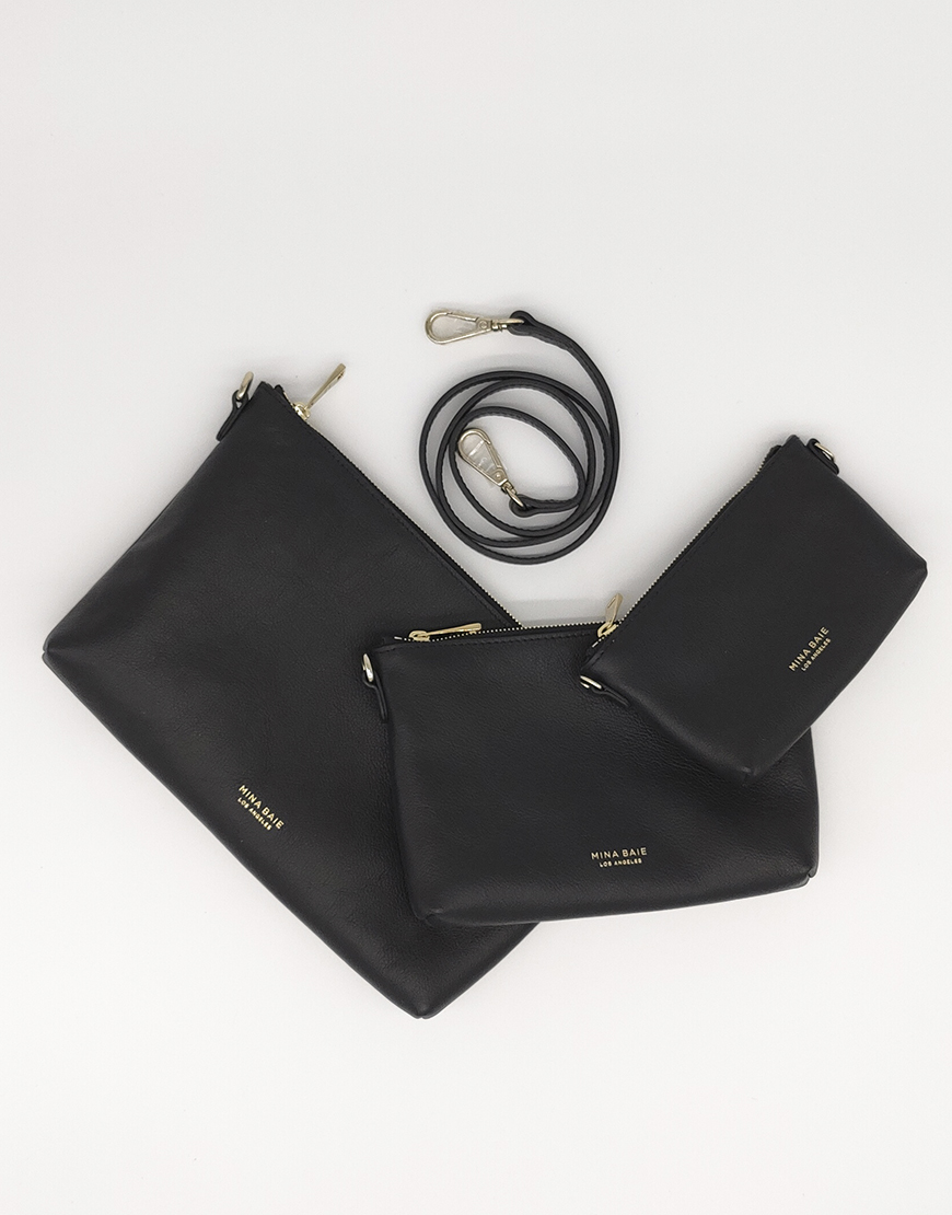 Mina Baie маленький клатч, в чёрной коже, тройной.