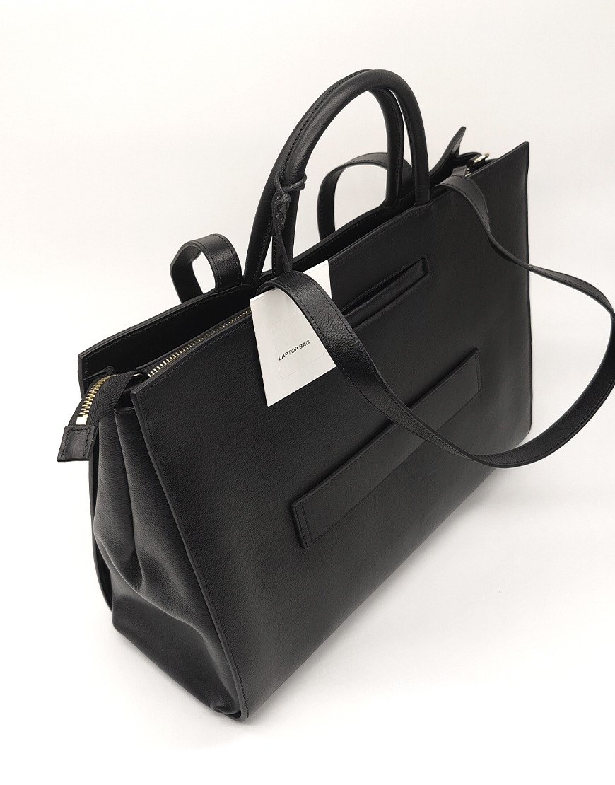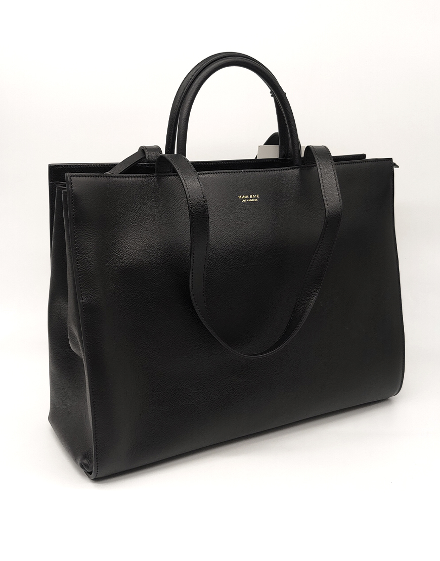 Mina Baie сумка-шопер в чёрной коже с молнией.