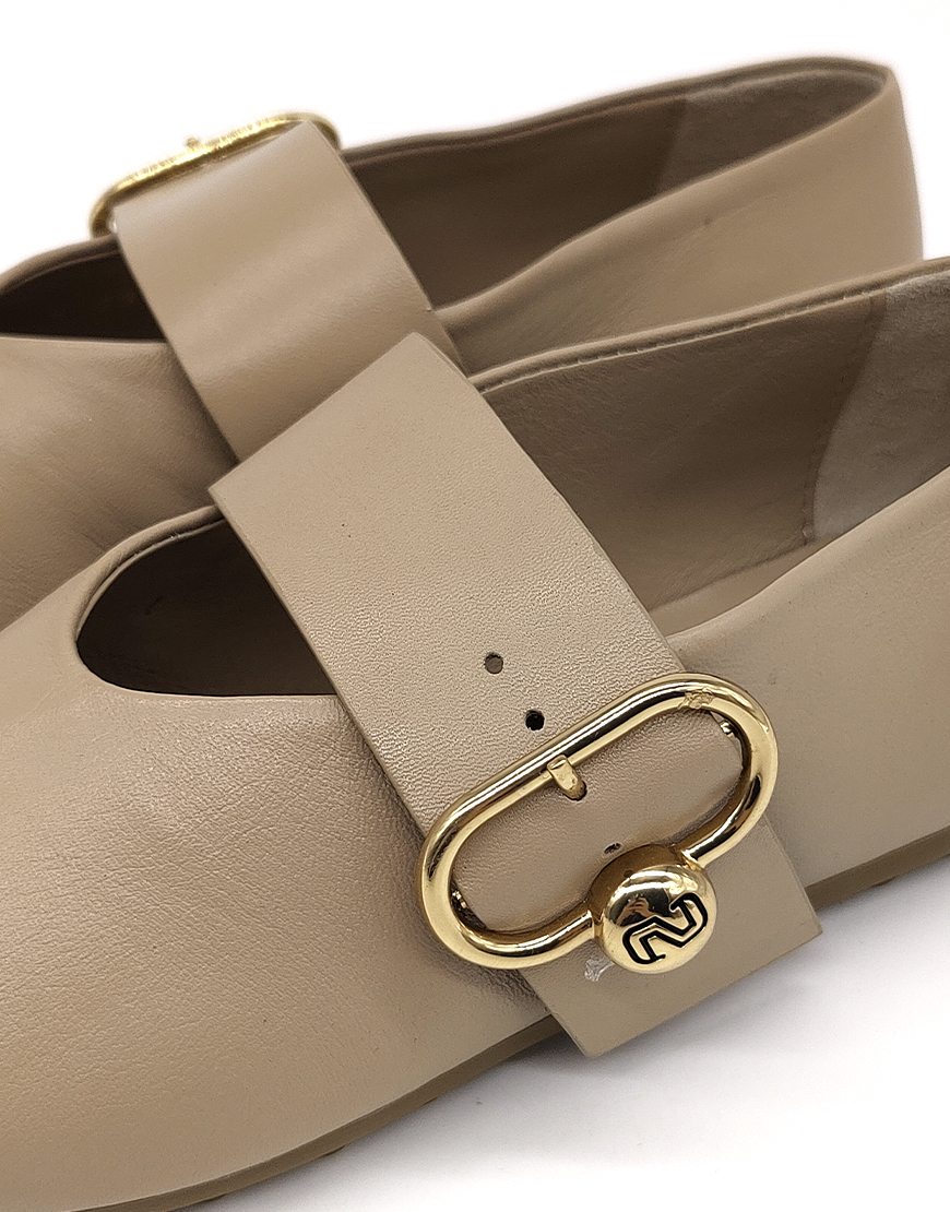 Nursace балетки в бежевой коже пряжка