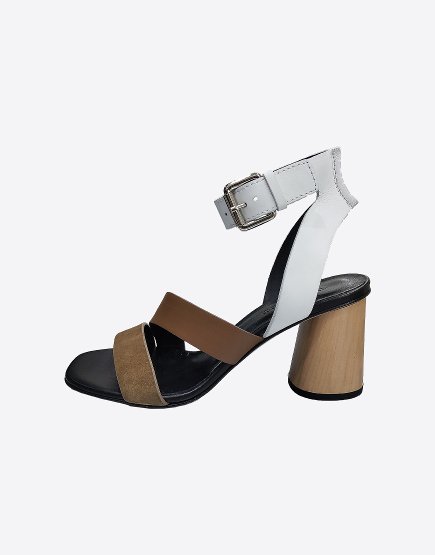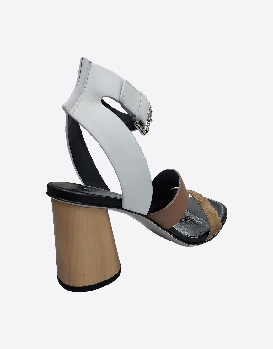 Nursace босоножки в бело — коричневом замше на среднем устойчивом каблуке