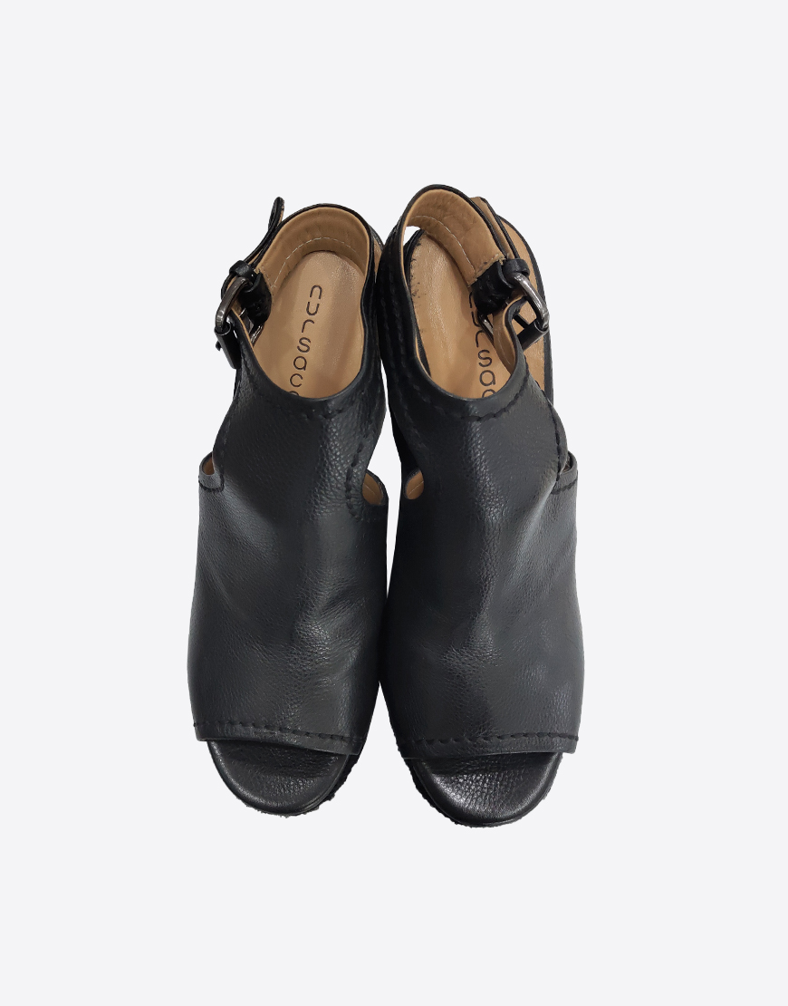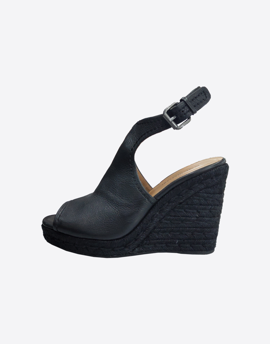 Nursace босоножки в чёрной коже на высокой платформе