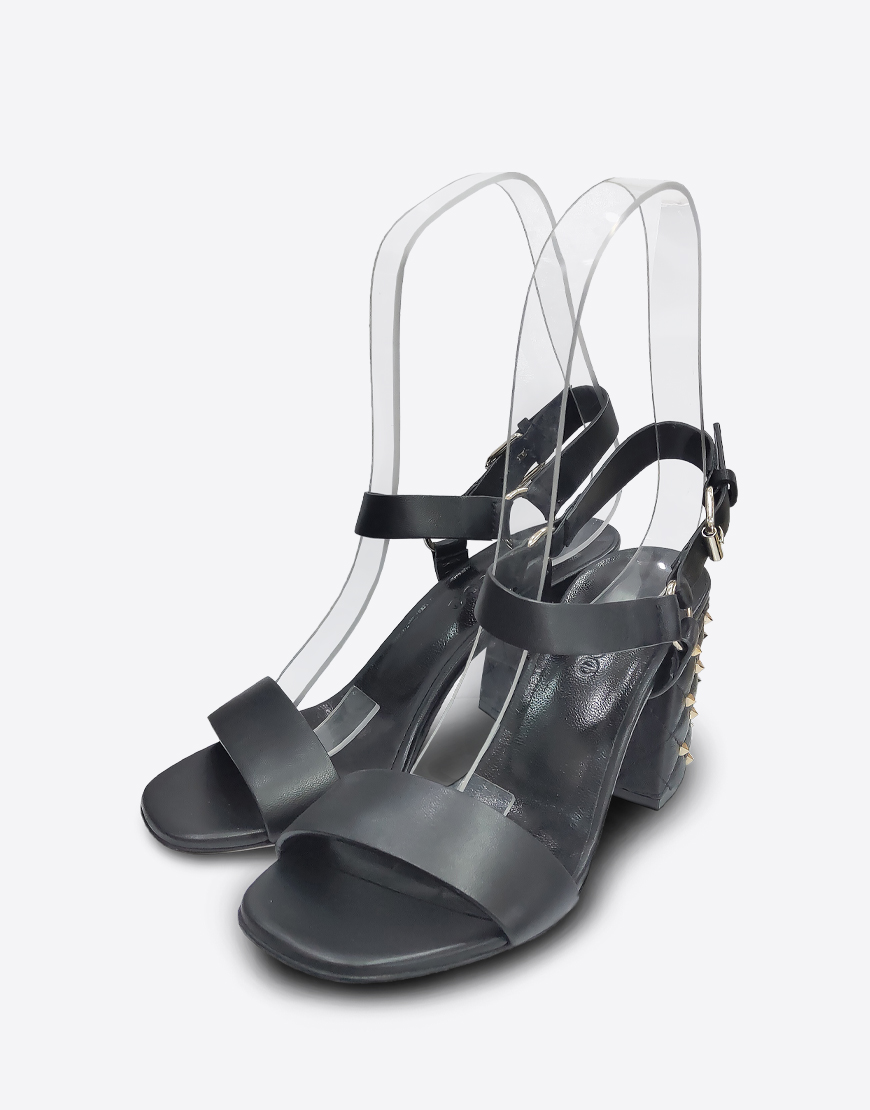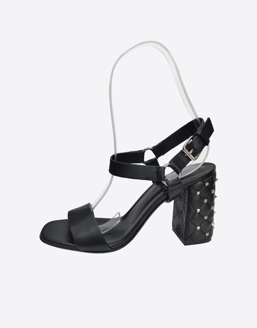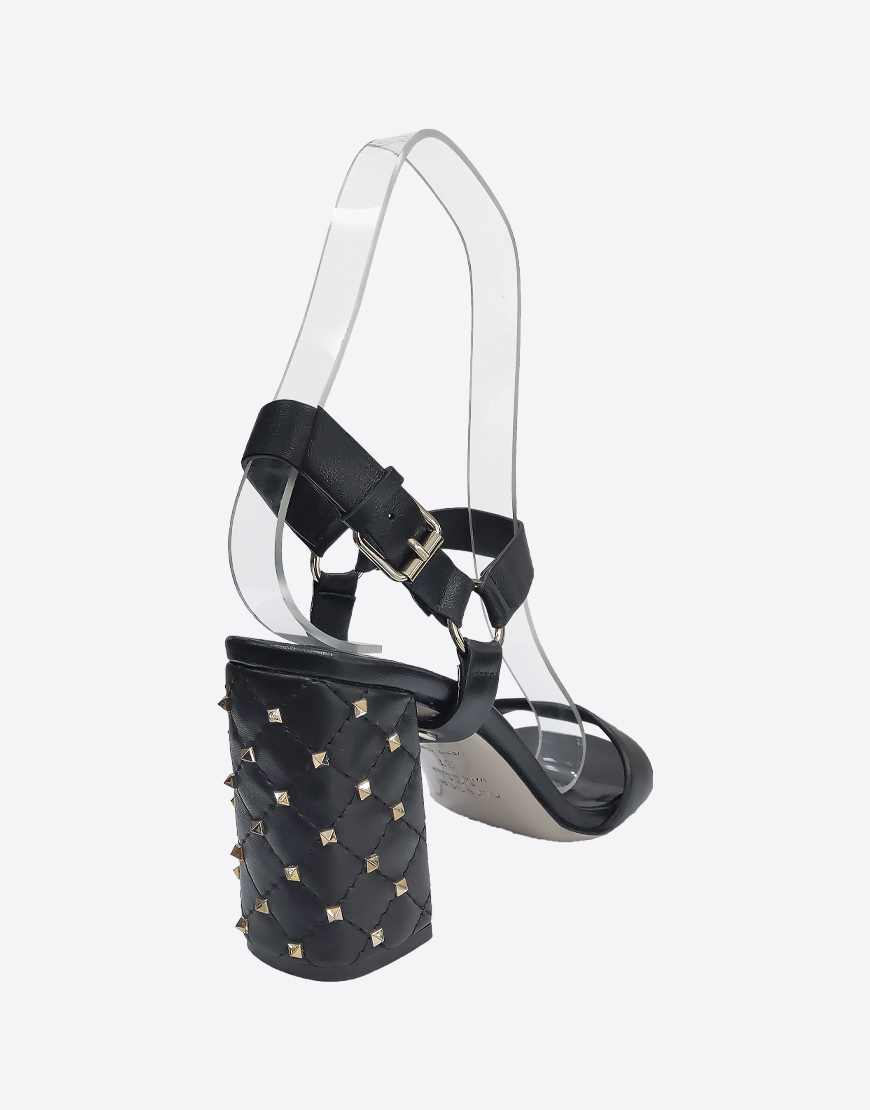 Nursace босоножки в чёрной коже на высоком устойчивом каблуке с шипами