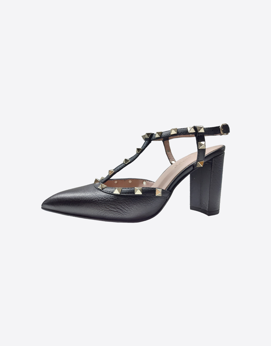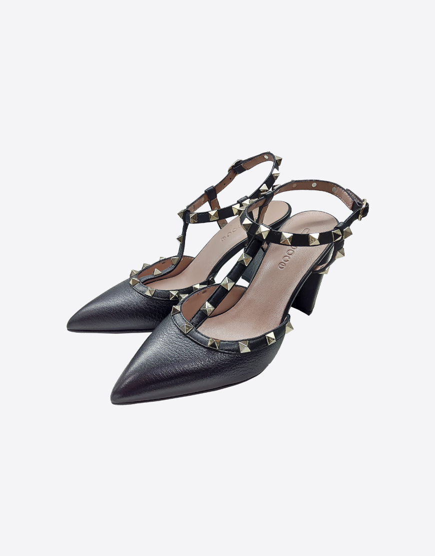 Nursace босоножки в чёрной коже с шипами на высоком устойчивом каблуке