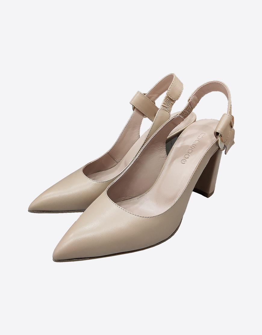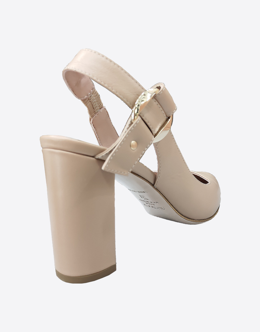 Nursace босоножки в бежевой коже с закрытым носом на высоком устойчивом каблуке