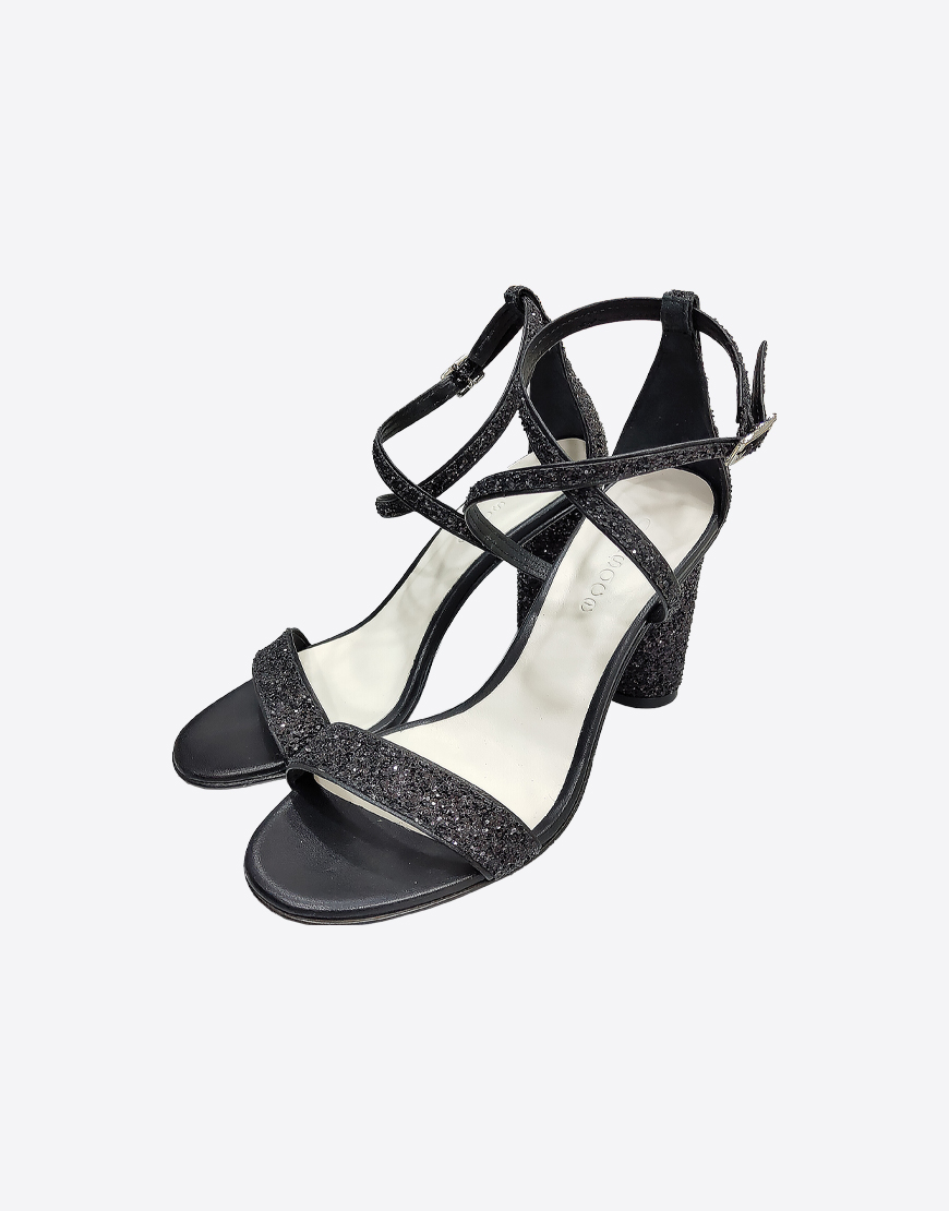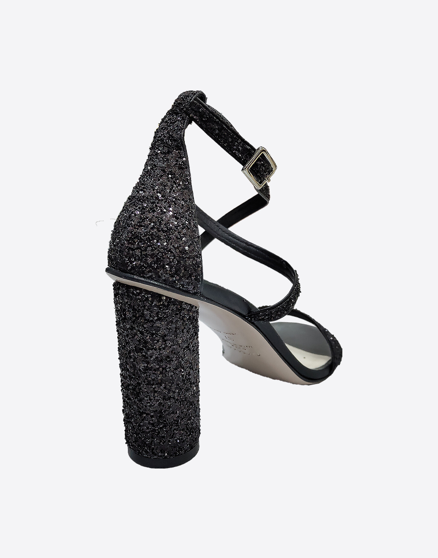 Nursace босоножки в чёрной коже в блесках на высоком устойчивом каблуке