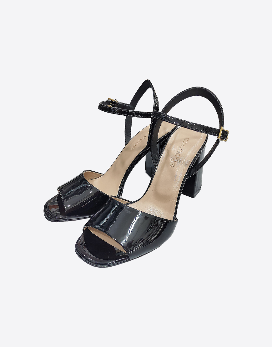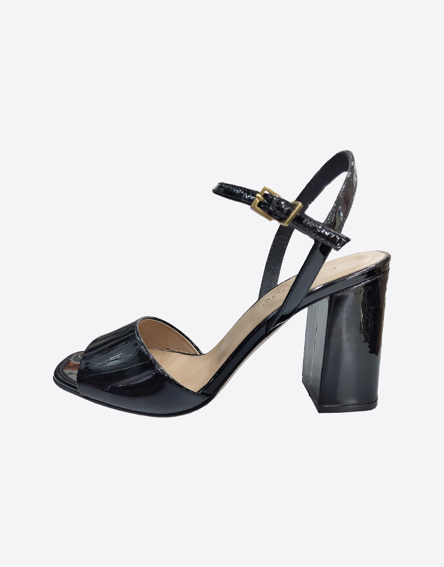Nursace босоножки в чёрном лаке на высоком устойчивом каблуке
