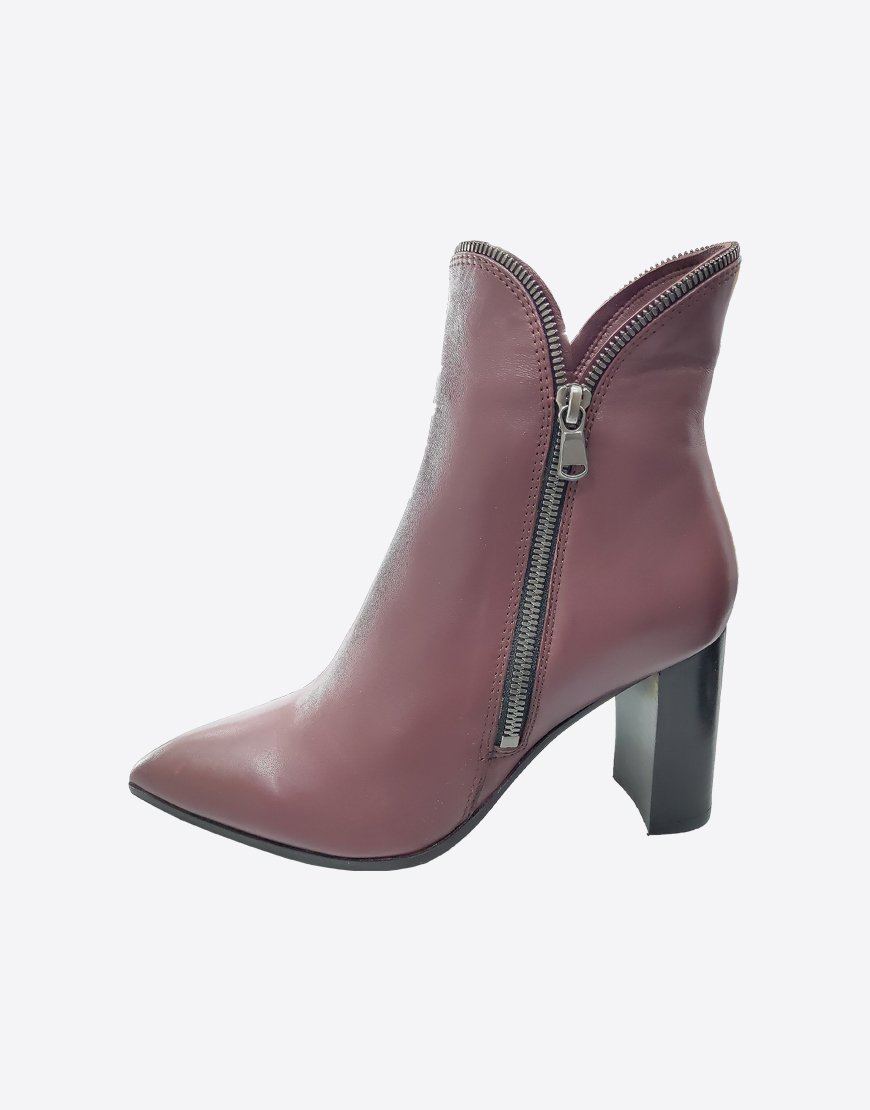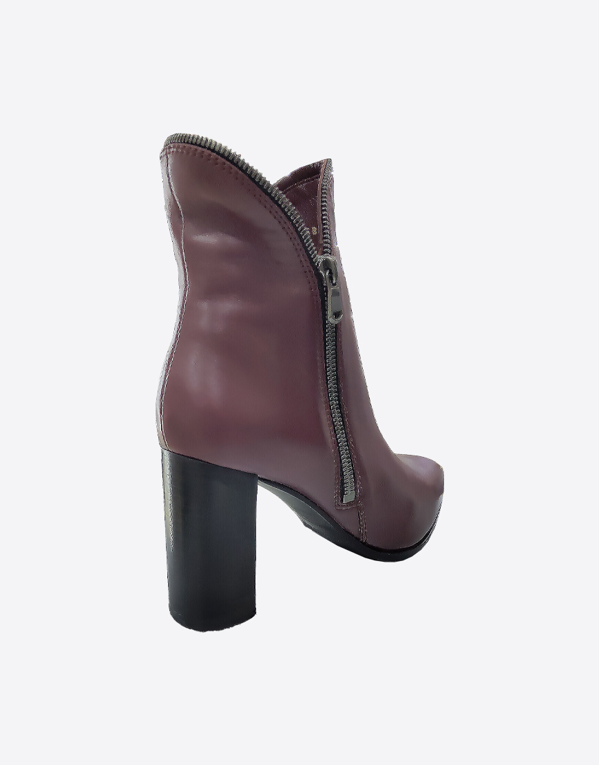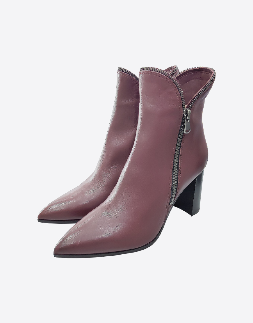 Nursace ботильоны в бордовой коже с молниями на высоком устойчивом каблуке