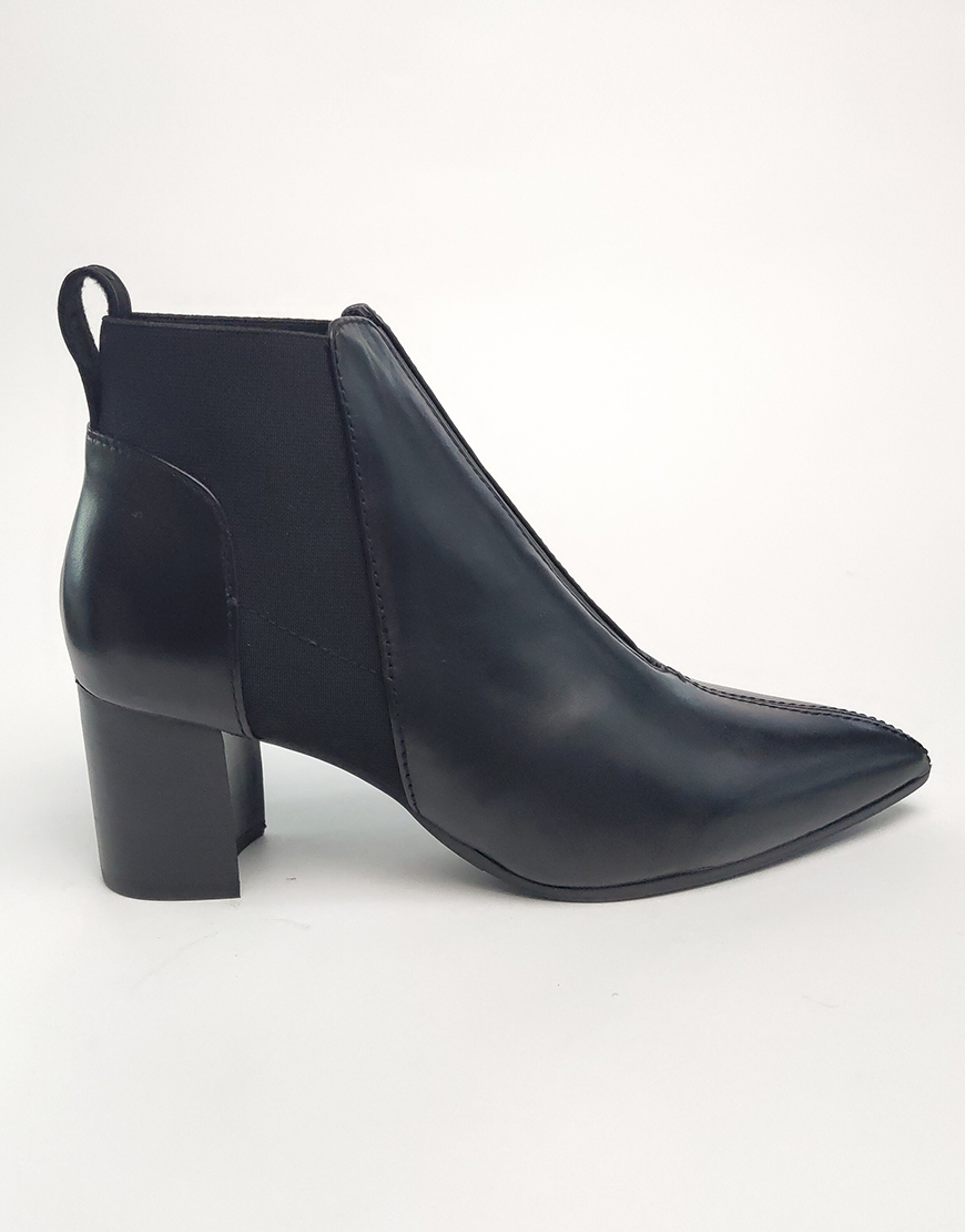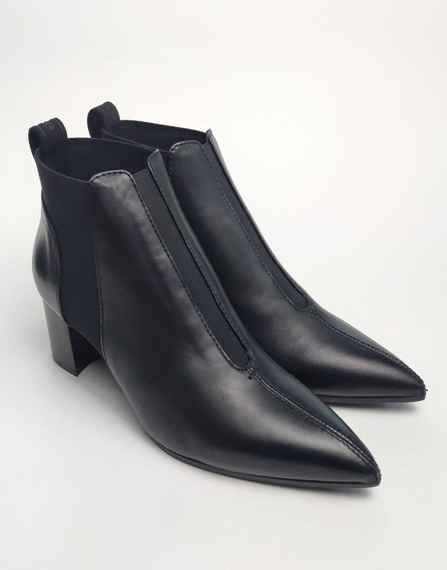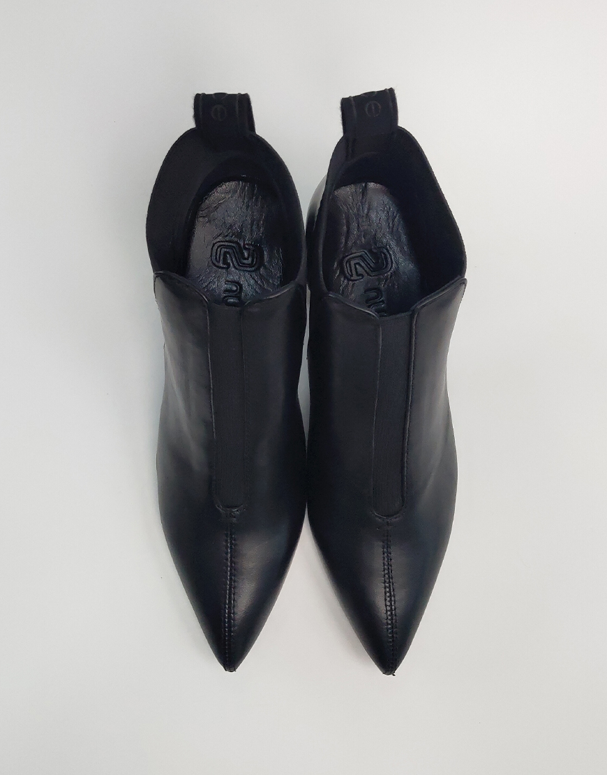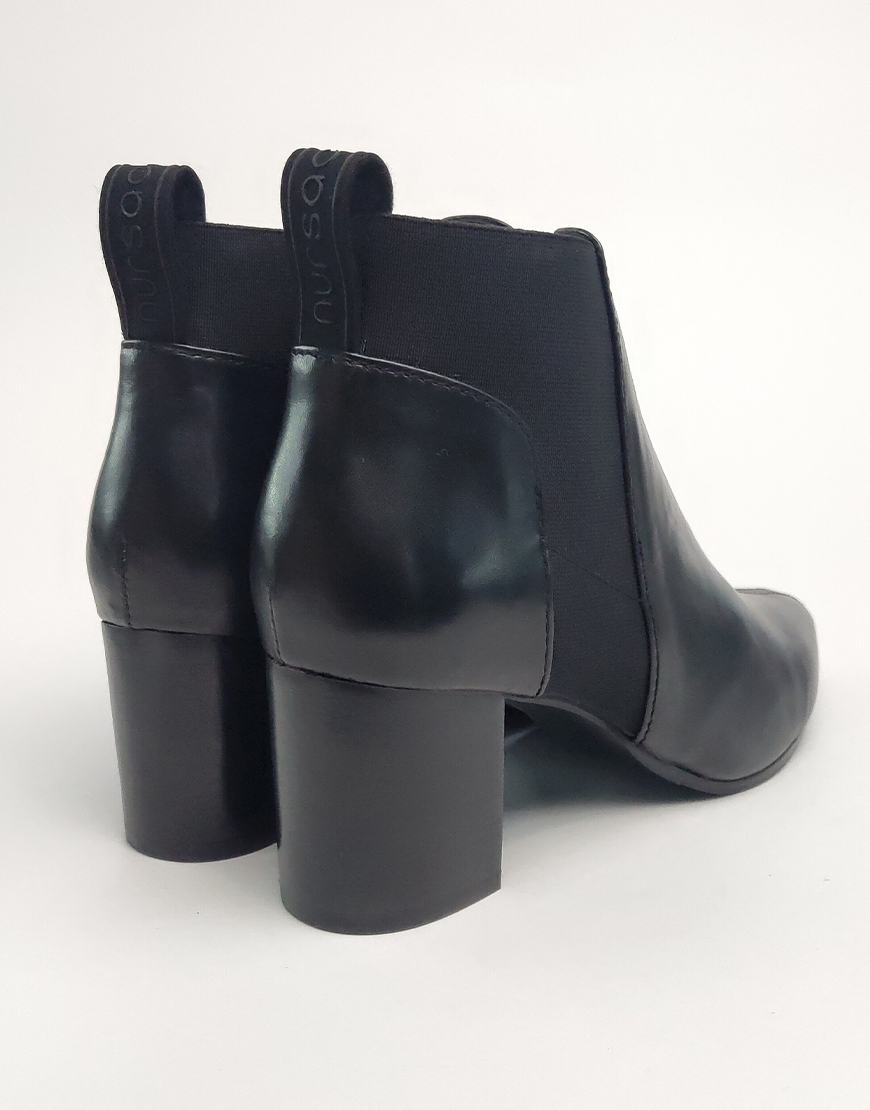 Nursace ботильоны в чёрной коже без меха на среднем устойчивом каблуке