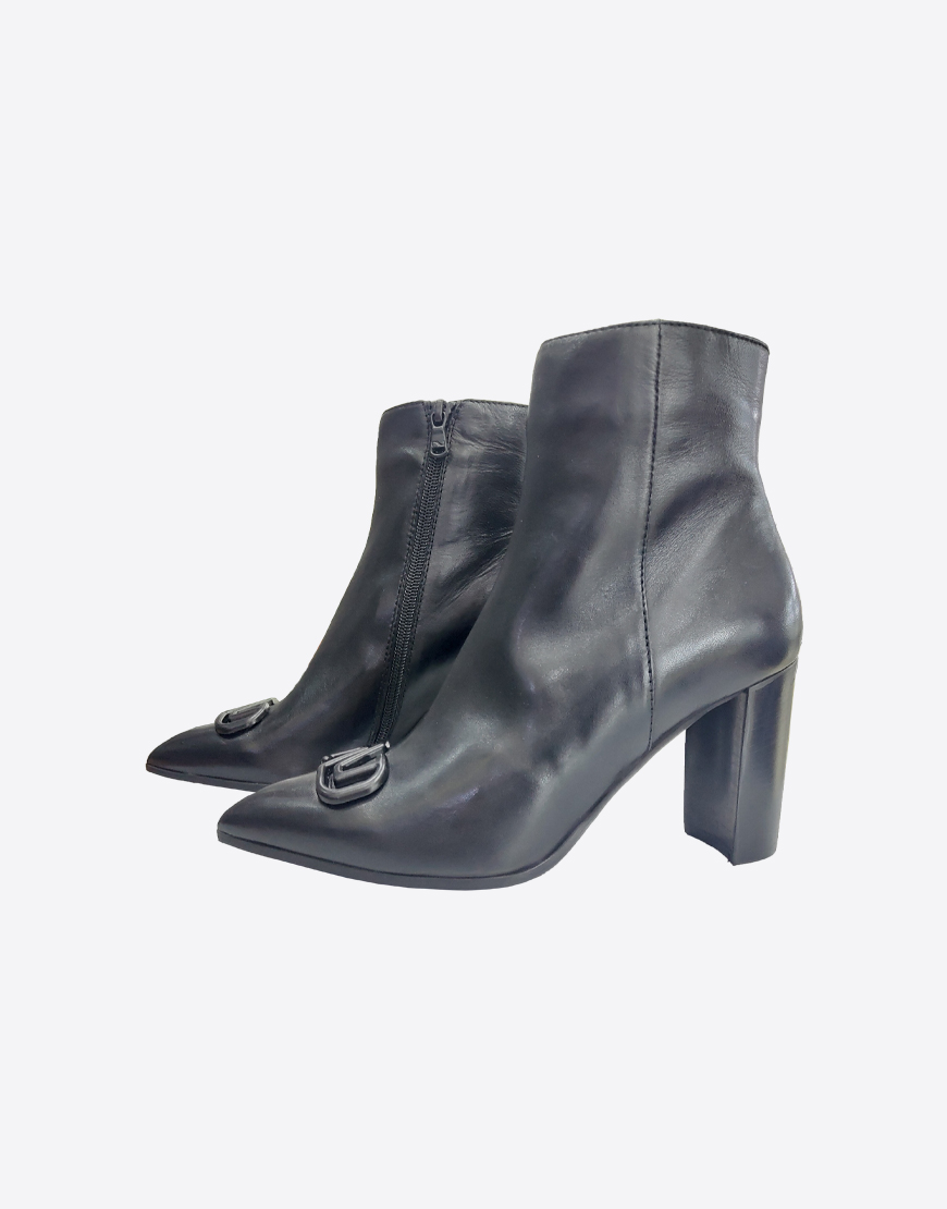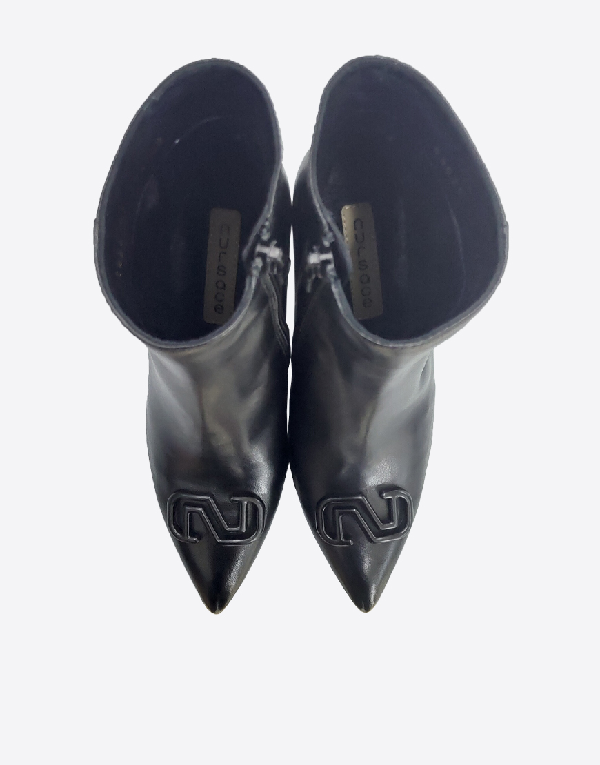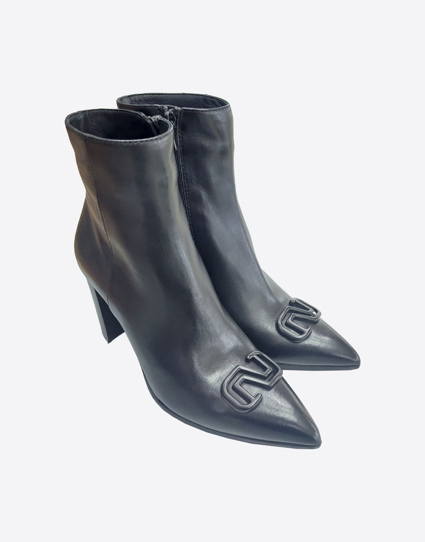 Nursace ботильоны в чёрной коже лого на высоком устойчивом каблуке