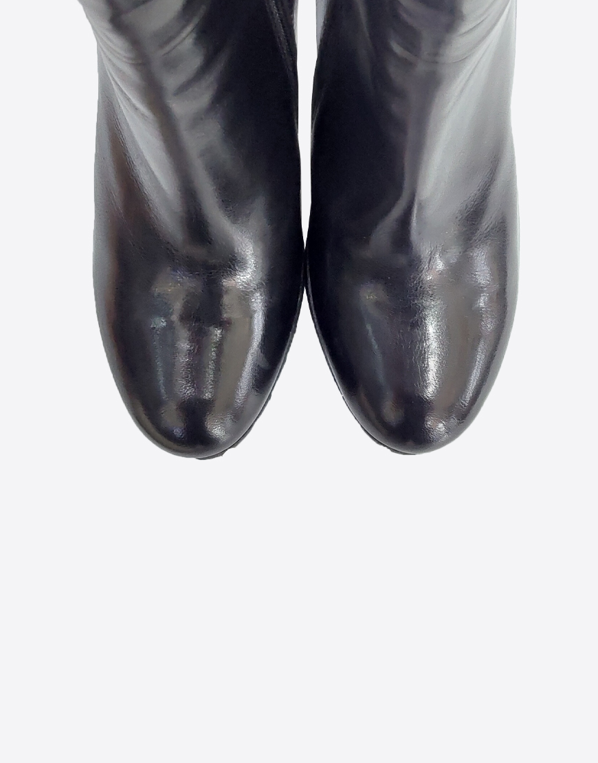 Nursace ботильоны в чёрной коже на байке, на высоком каблуке
