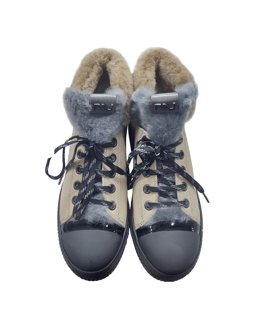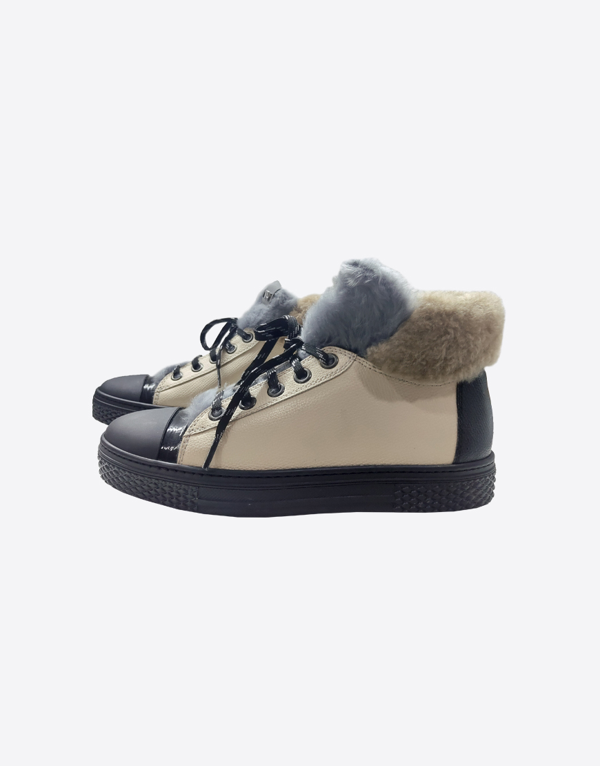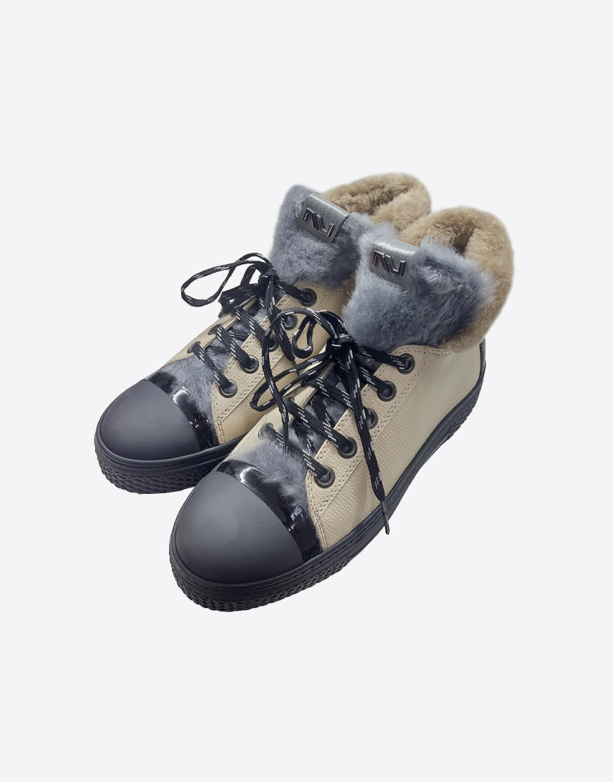 Nursace ботинки в бежевой коже как кеды с мехом