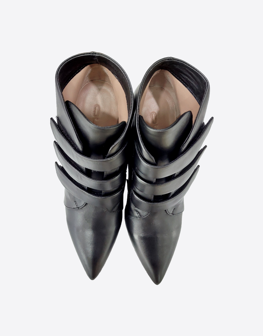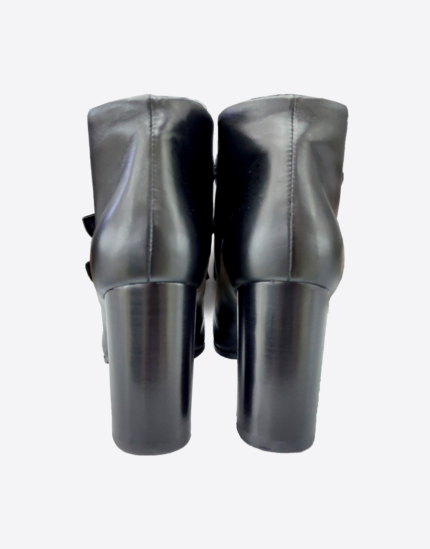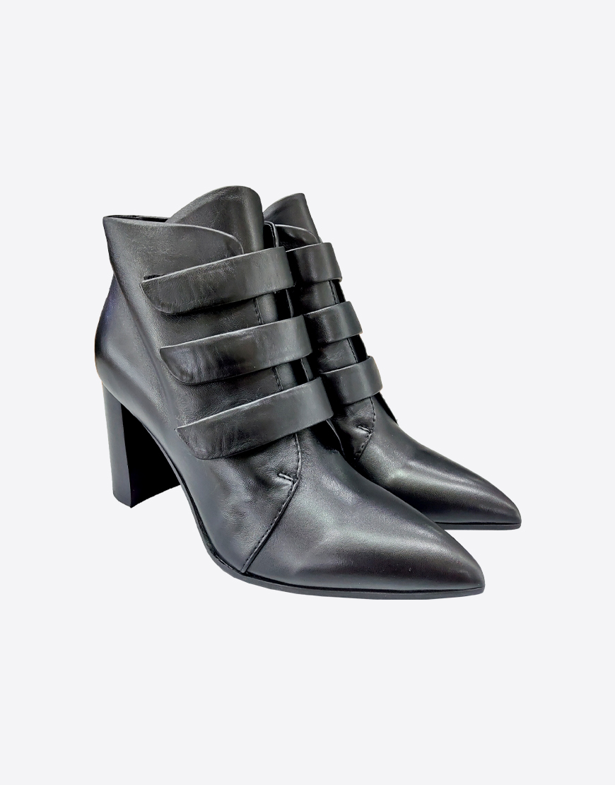 Nursace ботинки в чёрной коже на липучке на высоком устойчивом каблуке
