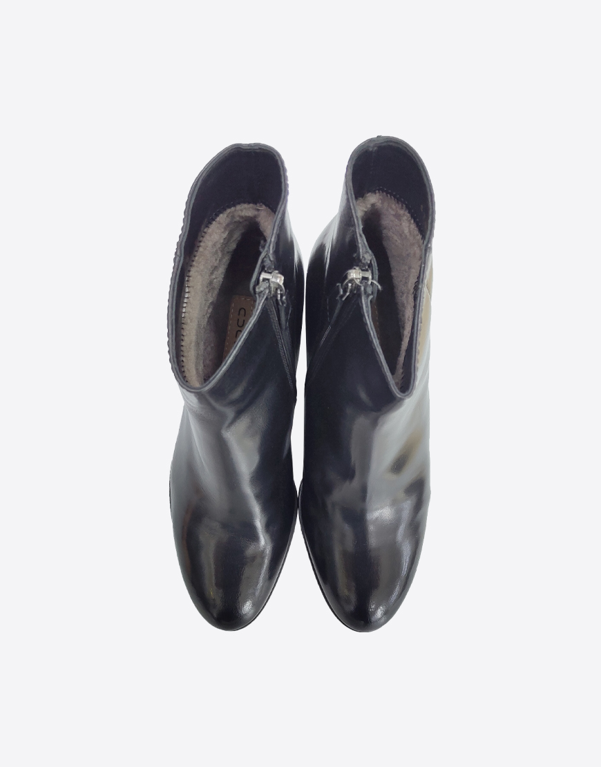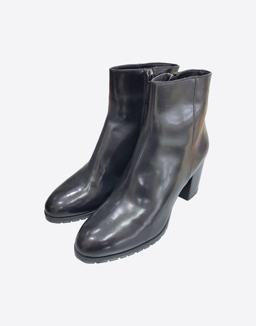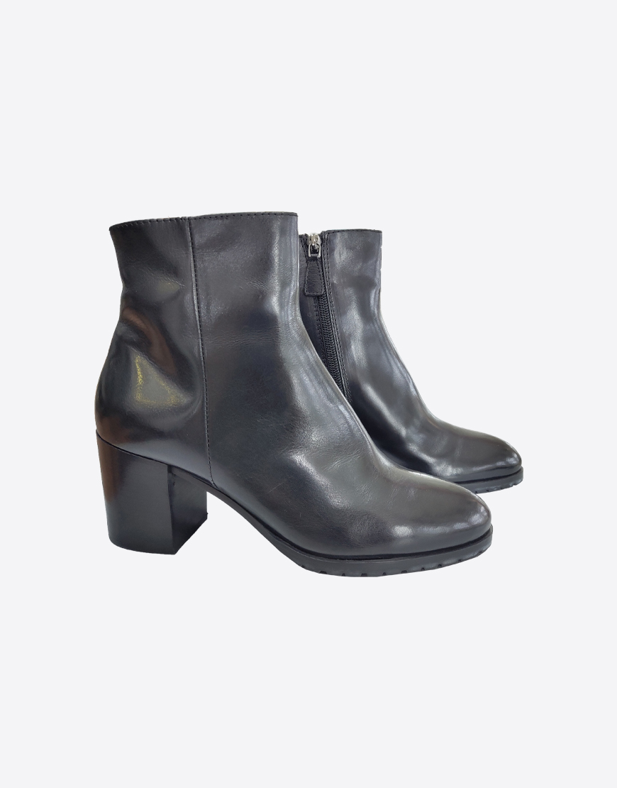 Nursace ботинки в чёрной коже на меху на среднем устойчивом каблуке