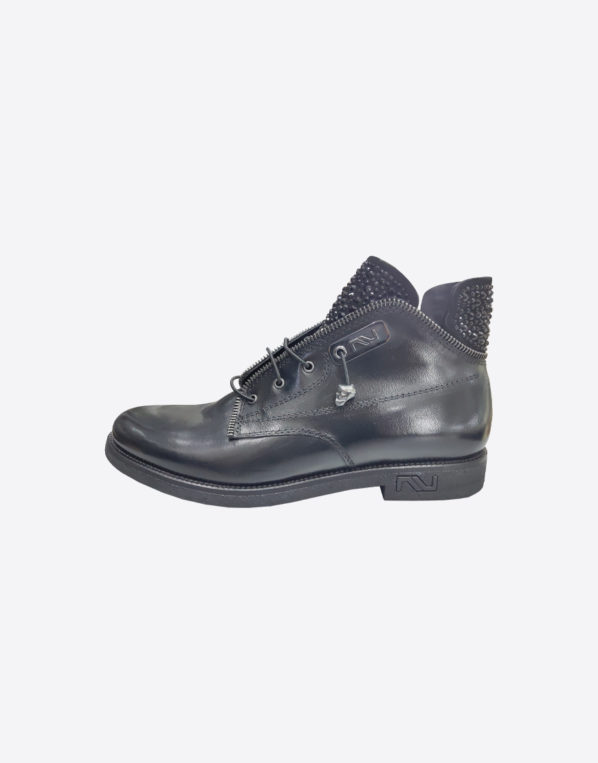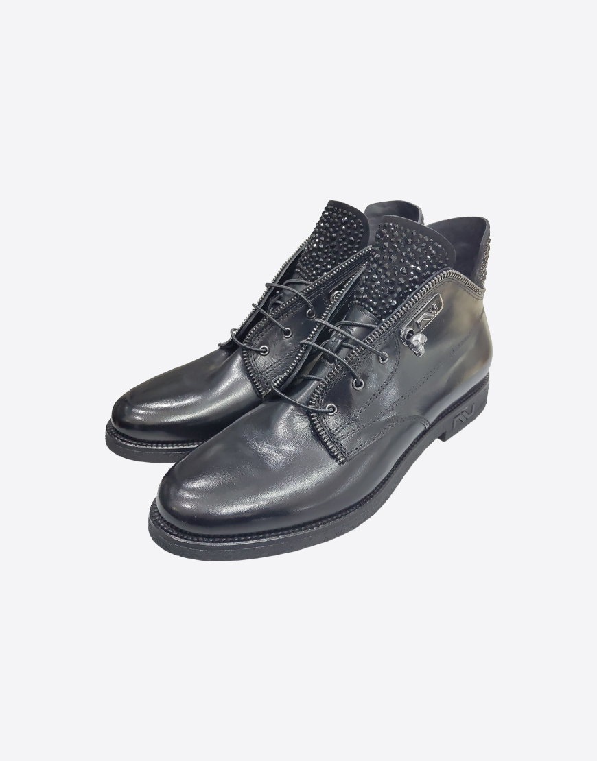 Nursace ботинки в чёрной коже с мехом и камнями