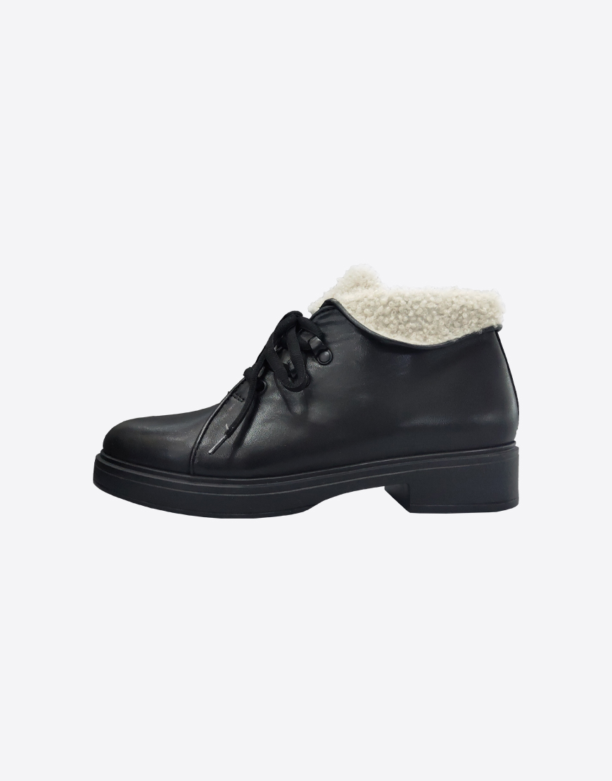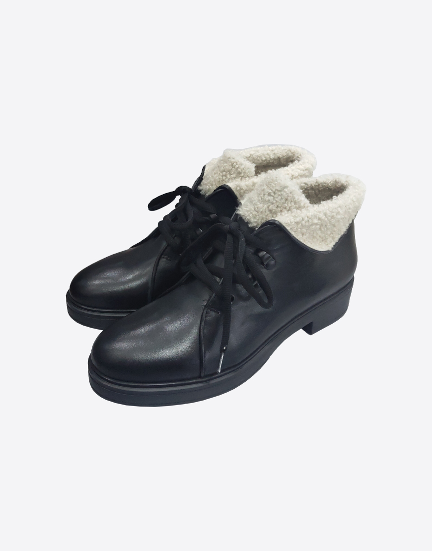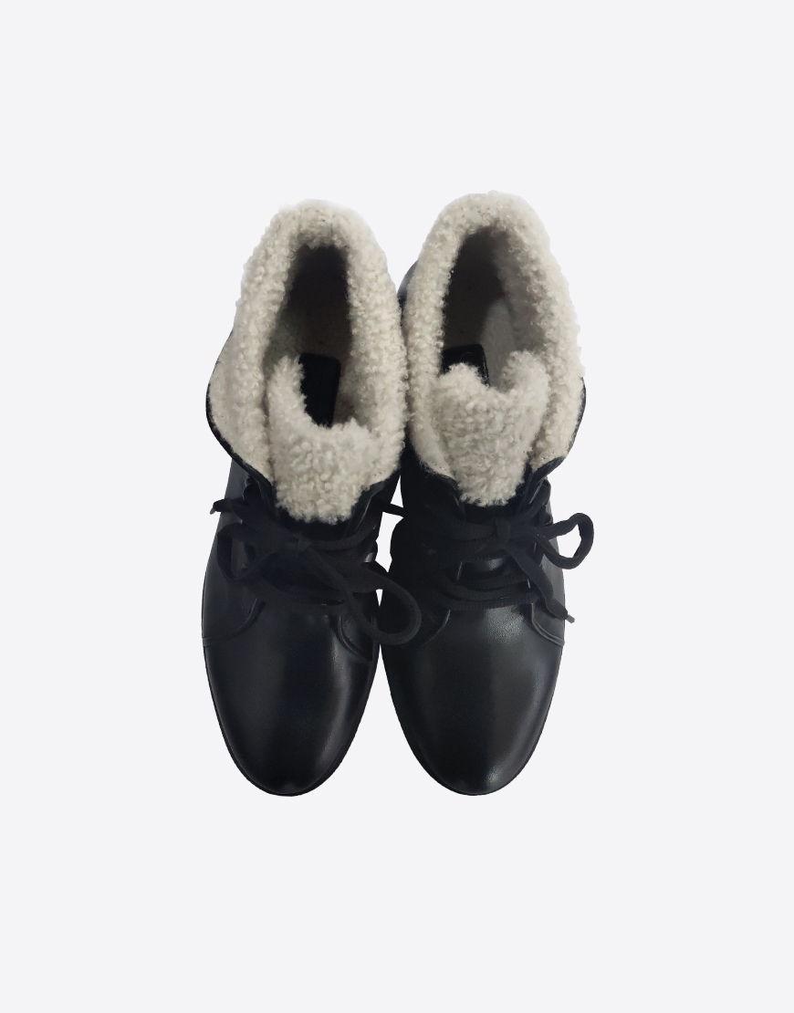 Nursace ботинки в чёрной коже с мехом на шнурках