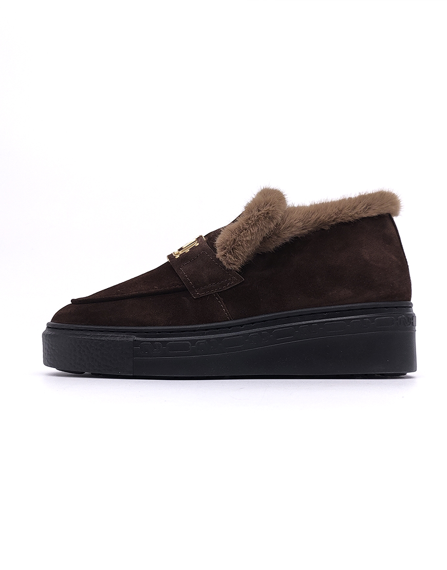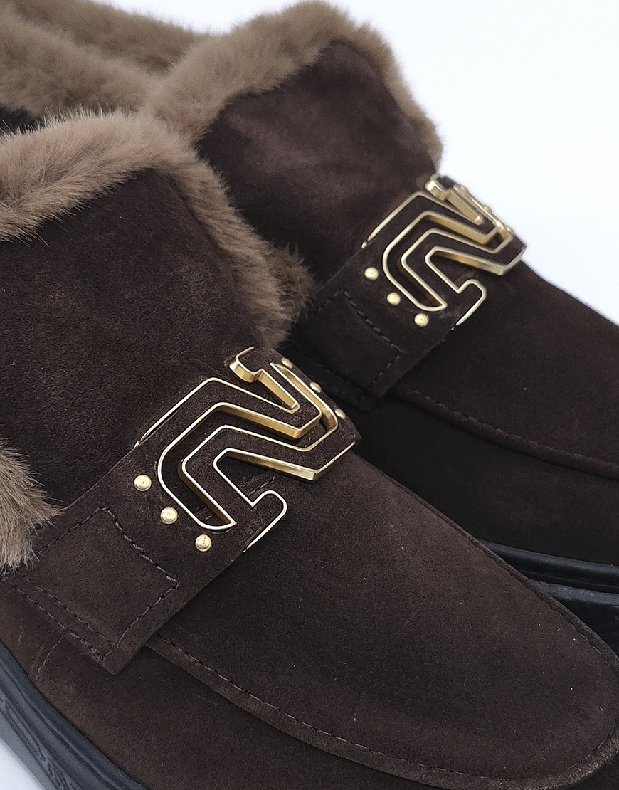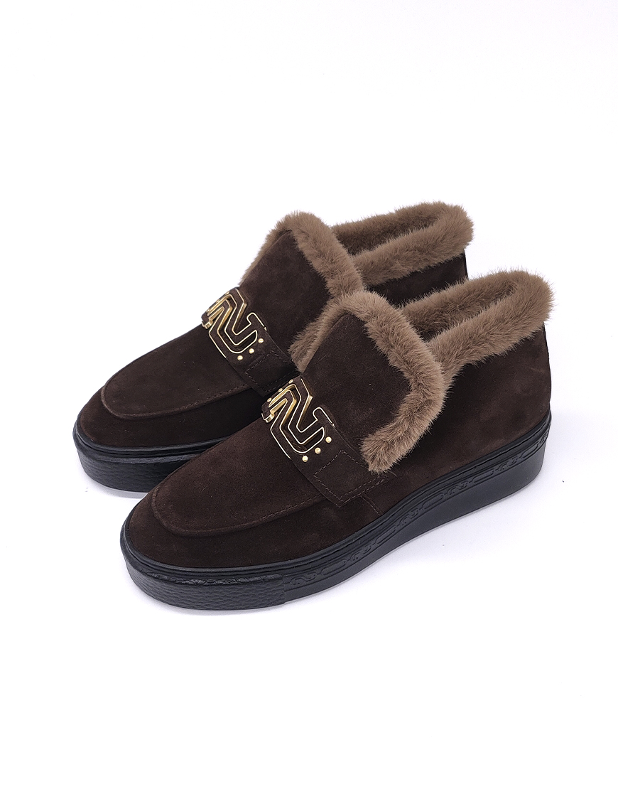Nursace ботинки в шоколадном замше с мехом