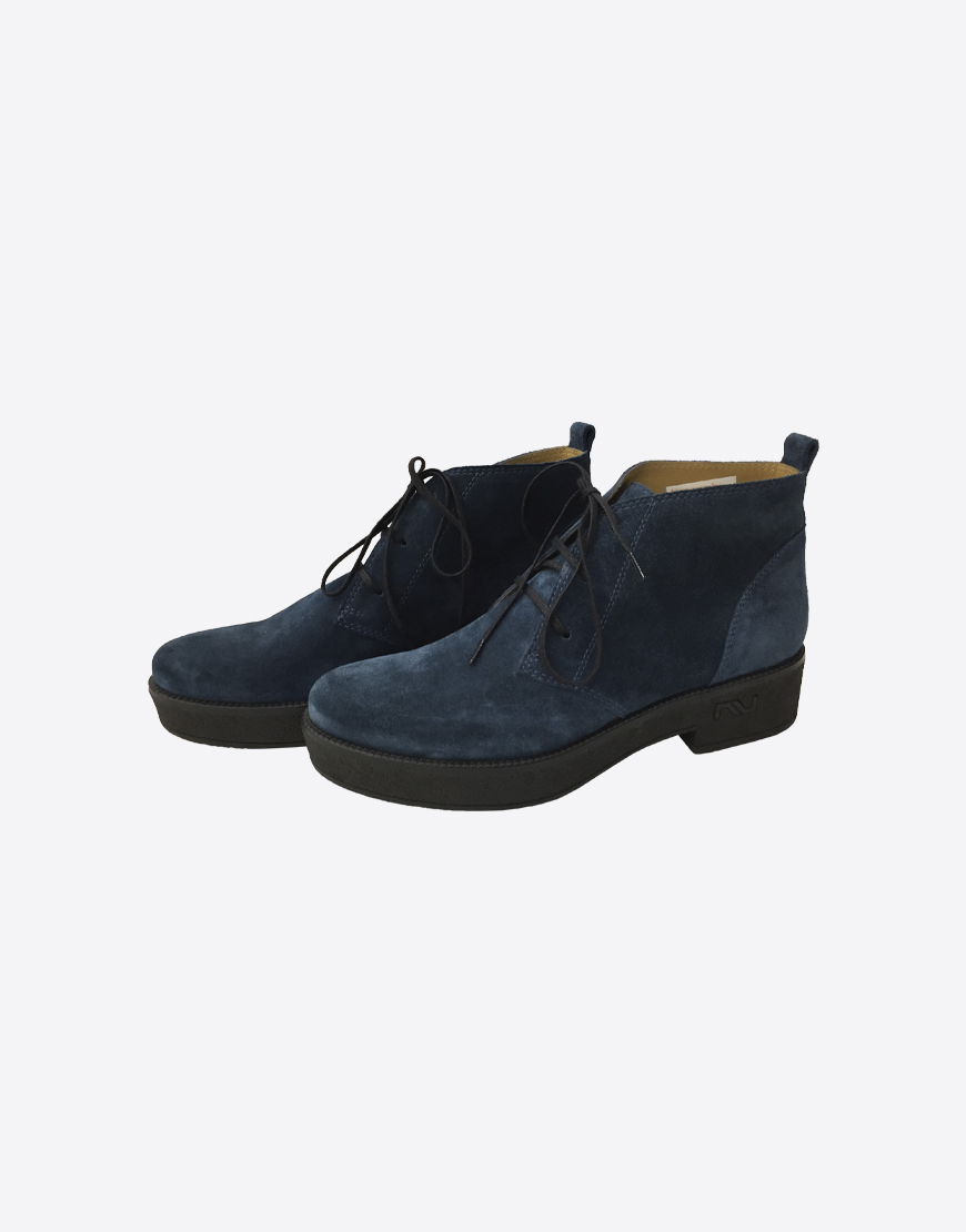Nursace ботинки в синей замше на низком каблуке