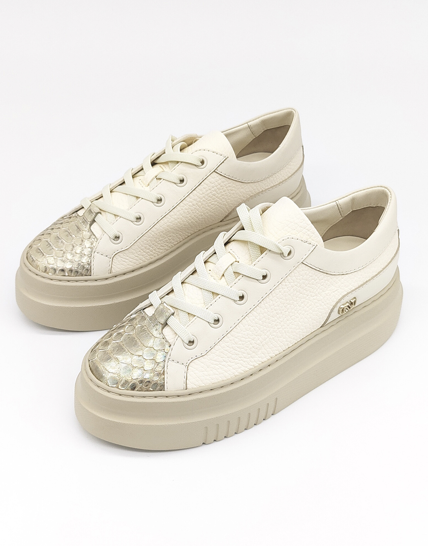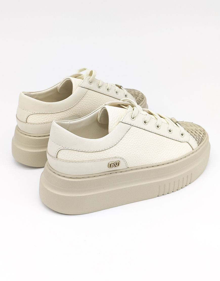 Nursace кеды в бежевой коже с питоном
