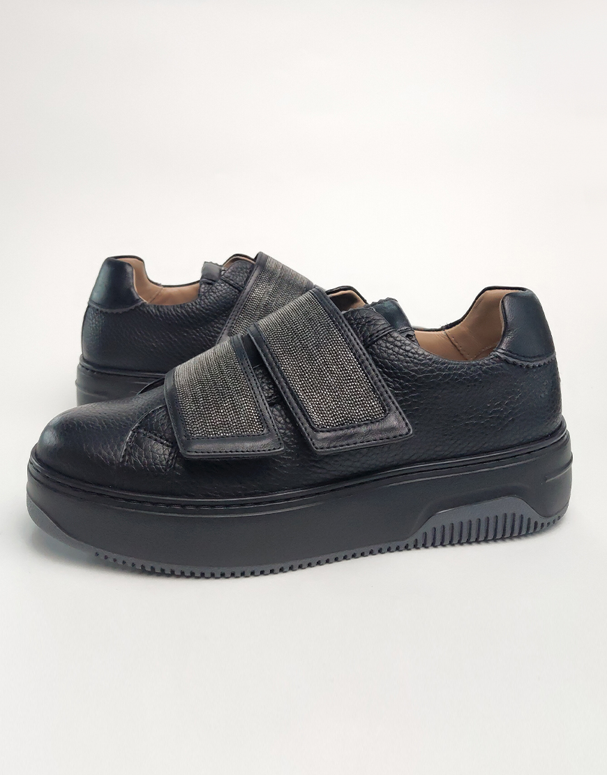 Nursace кеды в чёрной коже на липучках