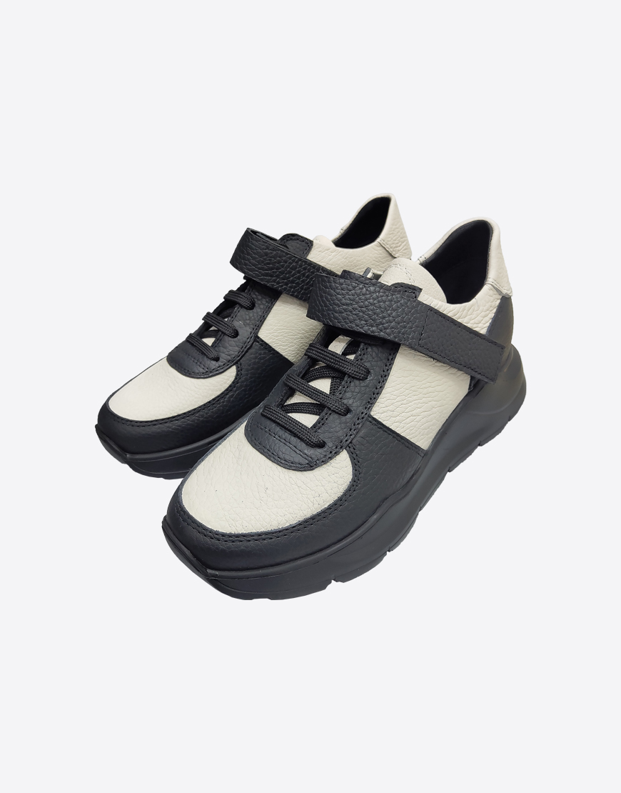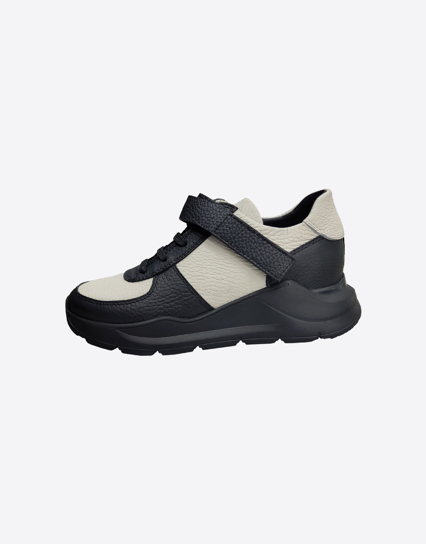Nursace кроссовки в чёрно + бежевой коже на липучке