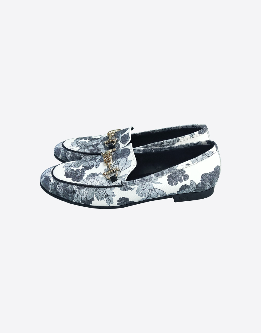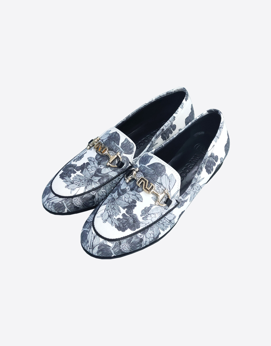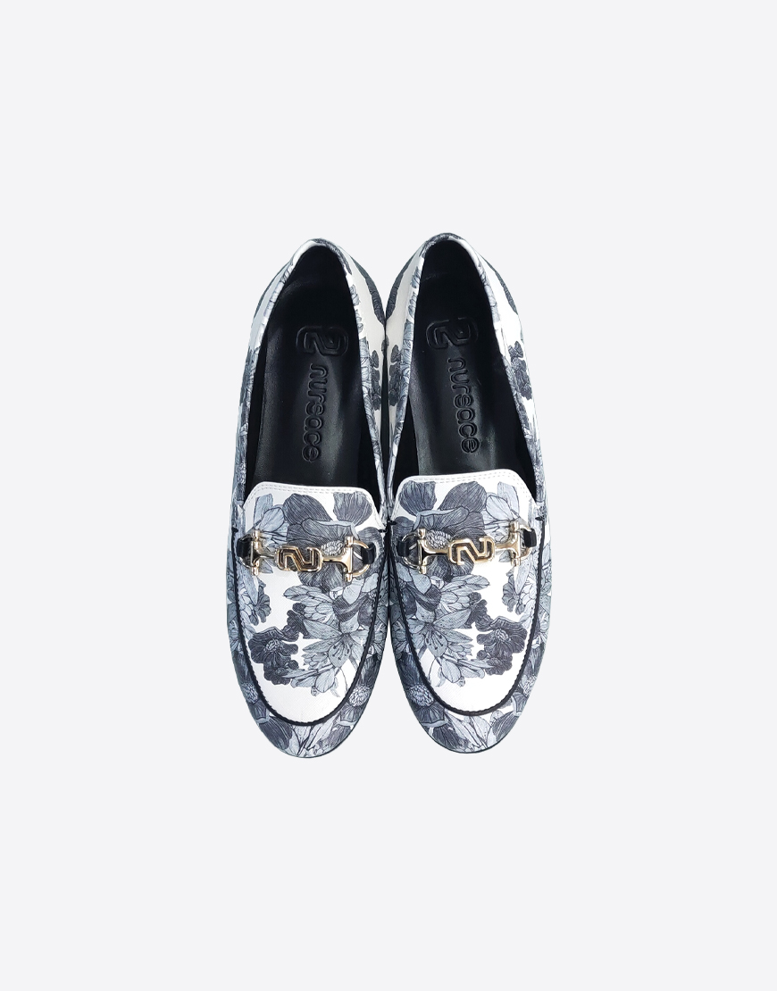 Nursace лоферы в белой коже с серыми цветами