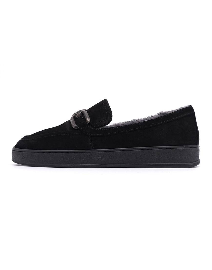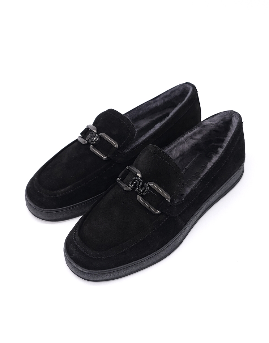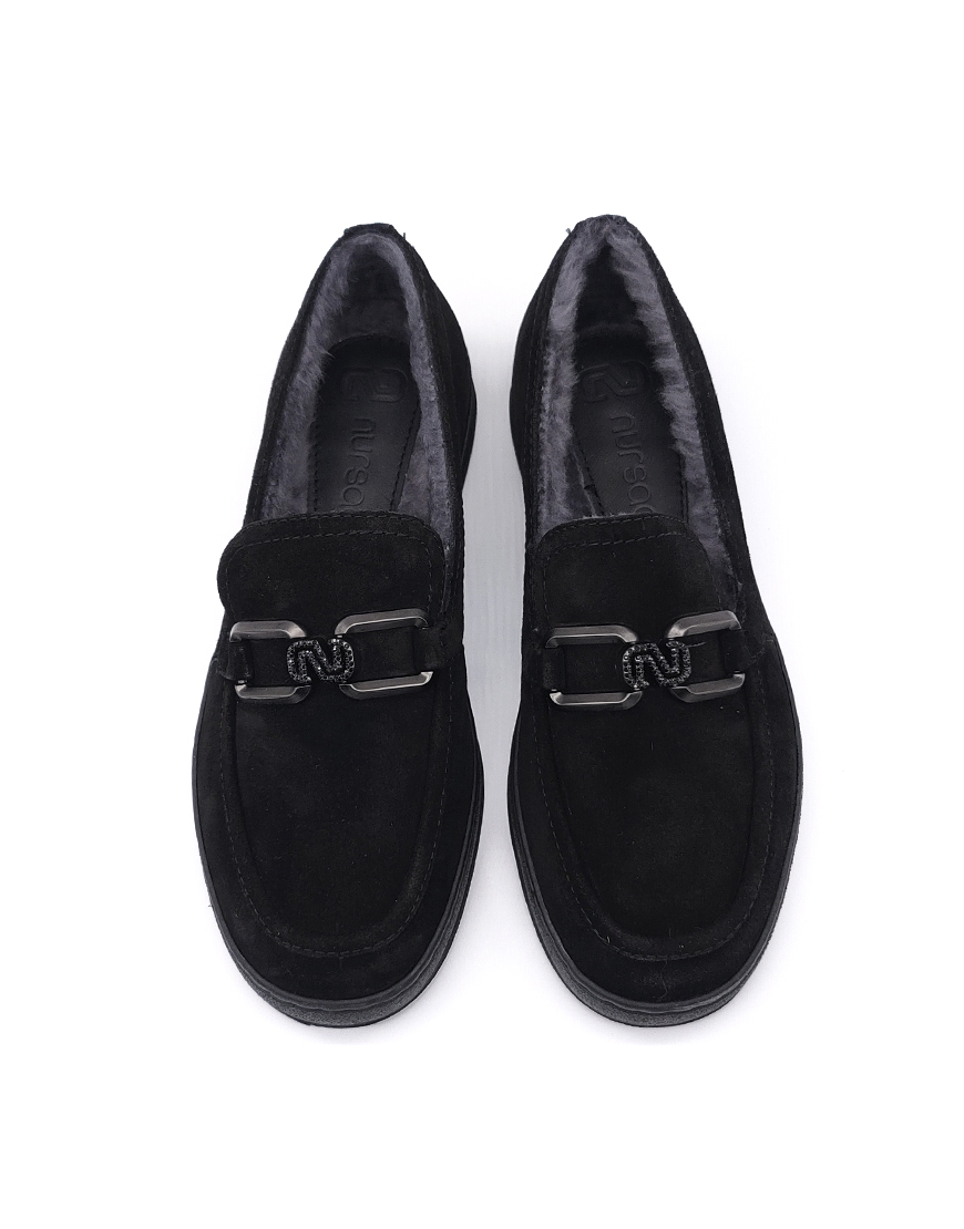Nursace лоферы в чёрной замше с мехом