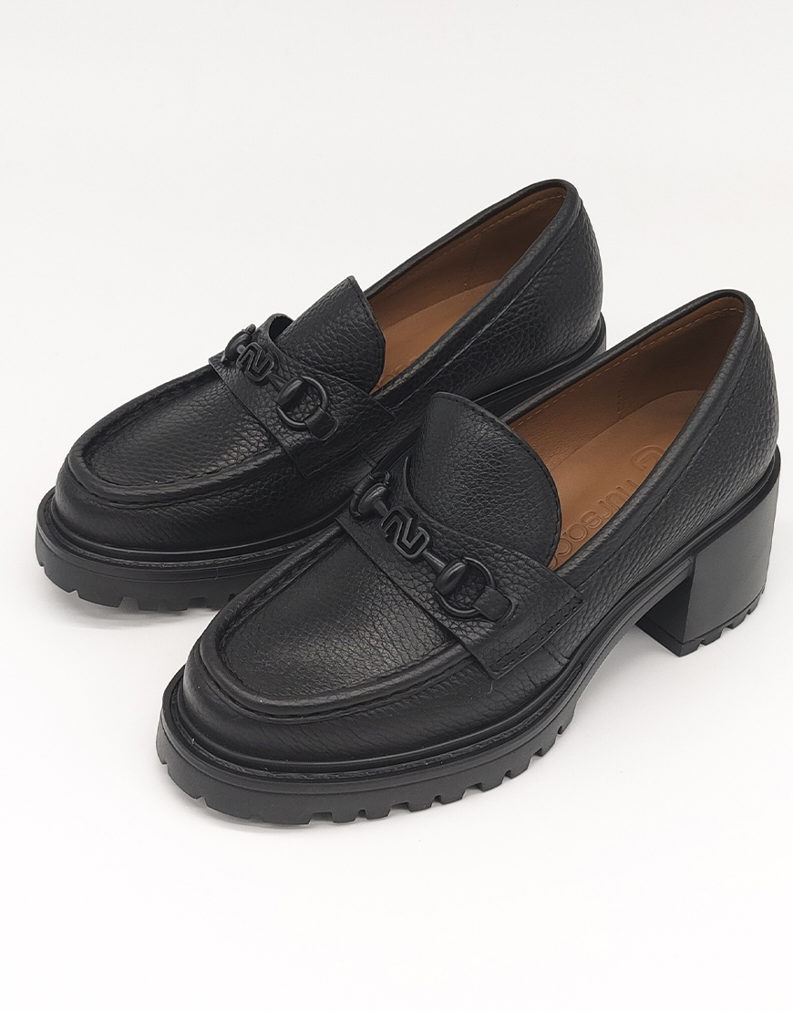 Nursace лоферы в чёрной коже на среднем каблуке
