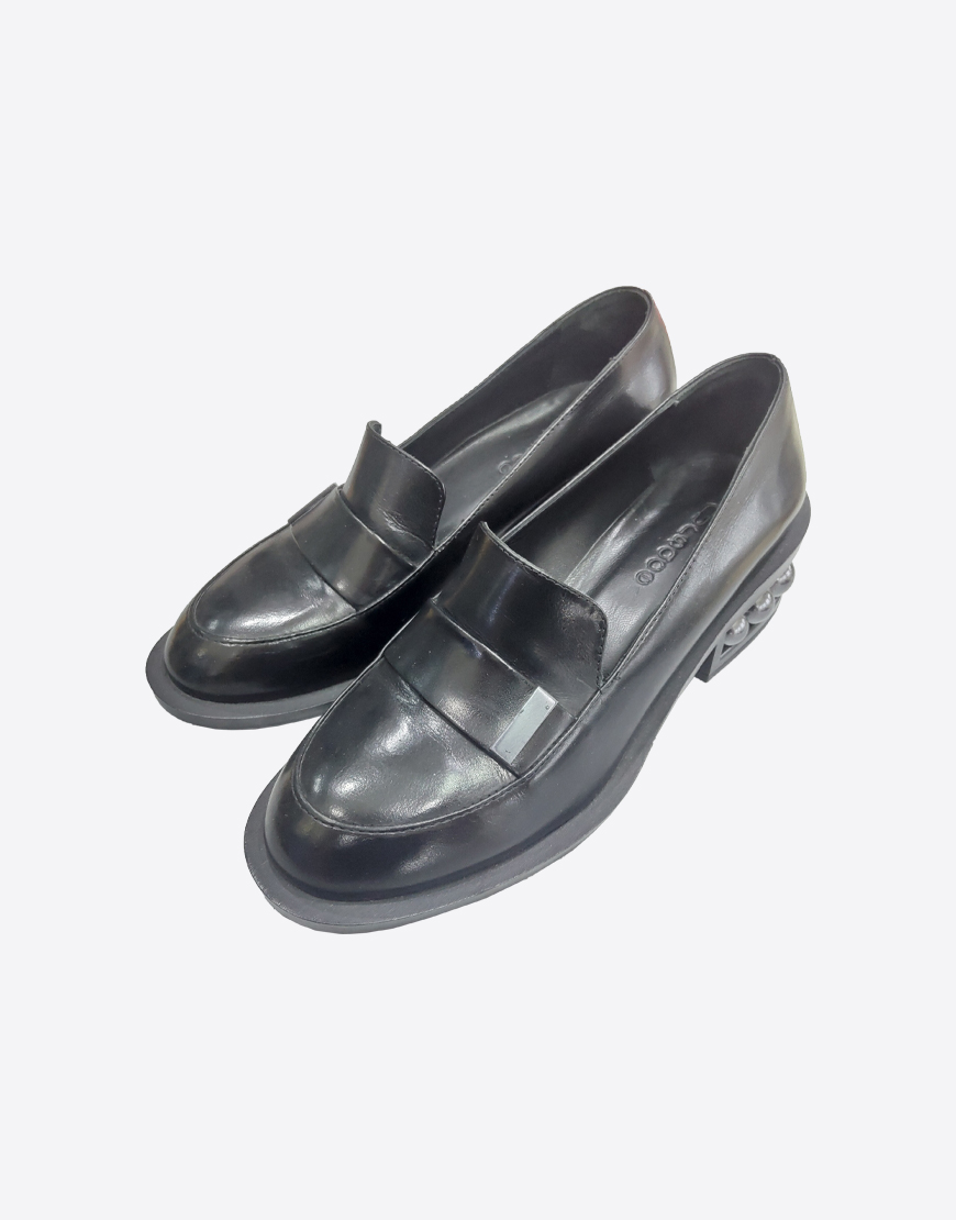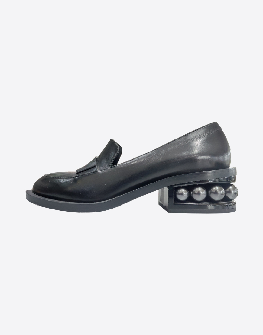 Nursace лоферы в чёрной коже с шарами на каблуке