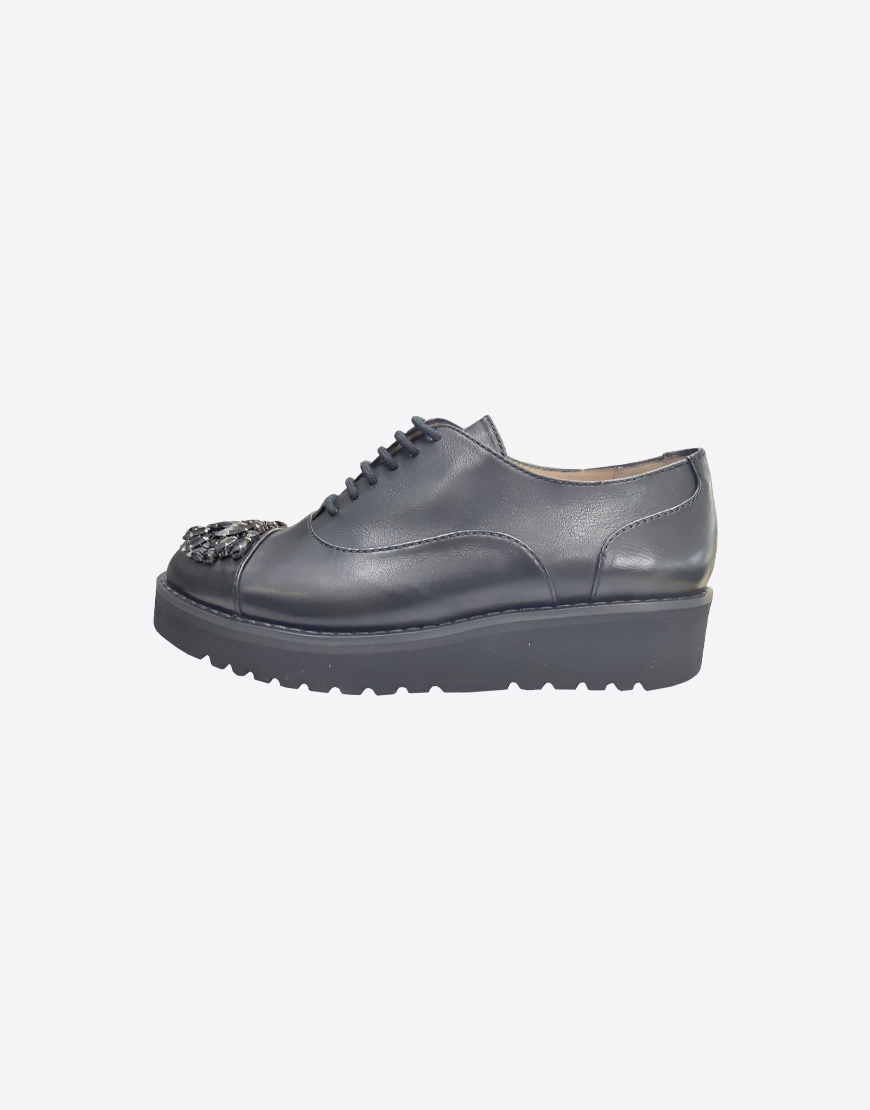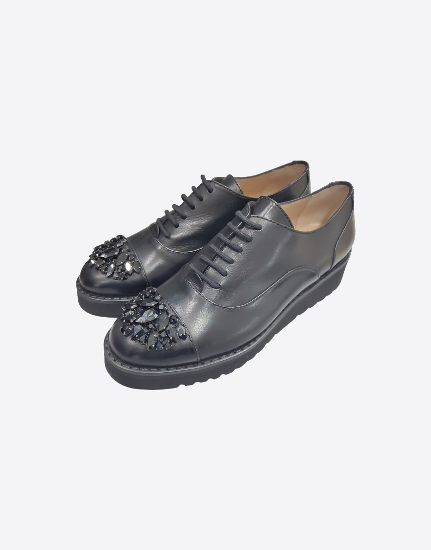 Nursace оксфорды в чёрной коже с камнями, на платформе