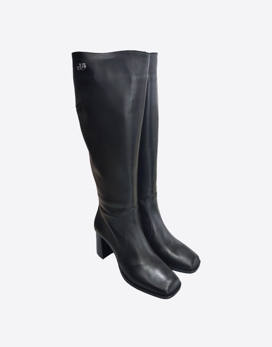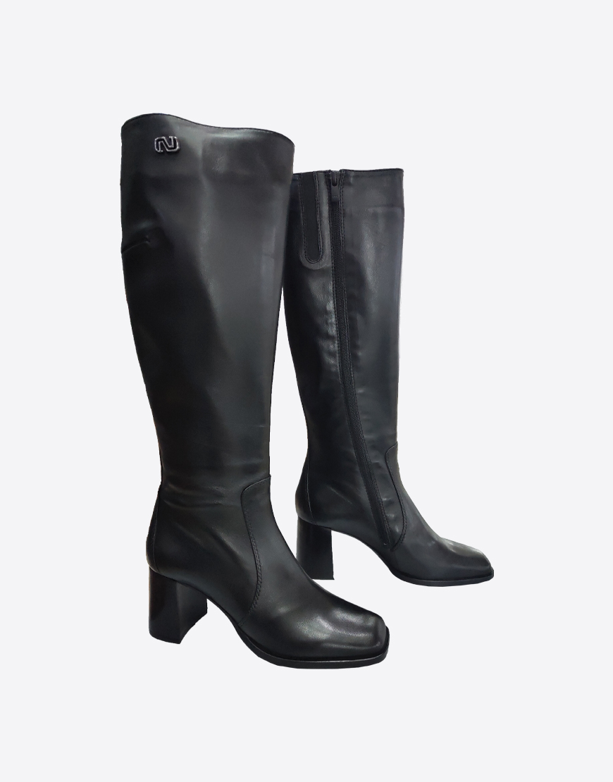 Nursace сапоги в чёрной коже на байке на среднем устойчивом каблуке
