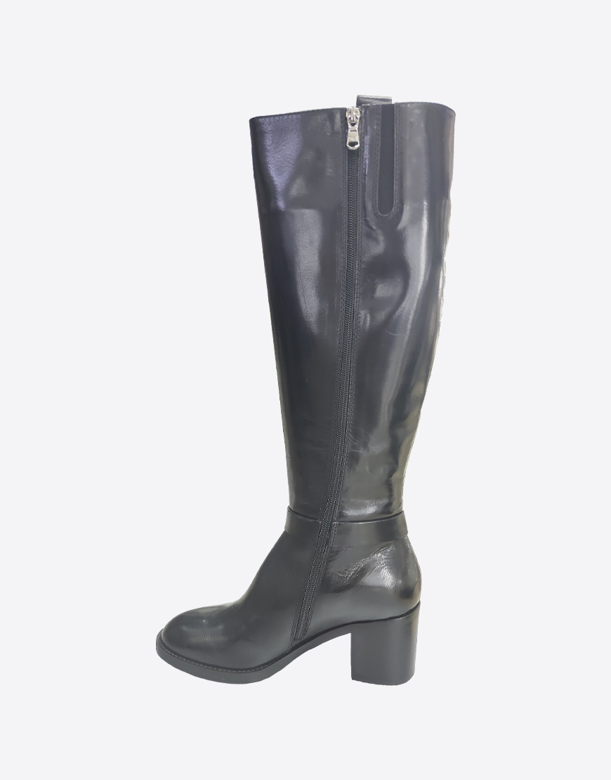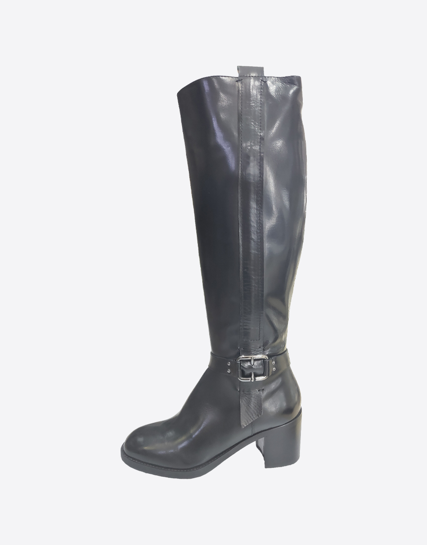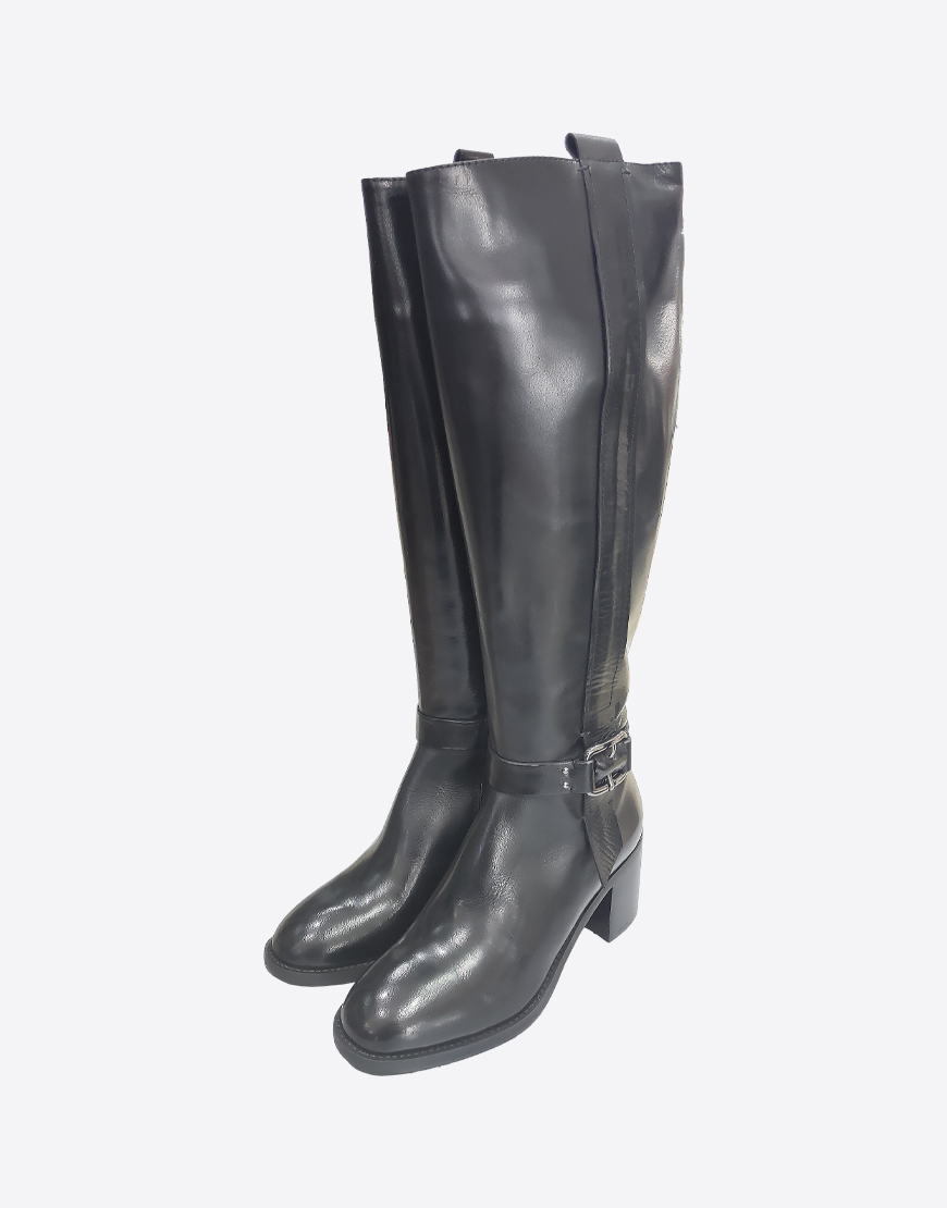 Nursace сапоги в чёрной коже на евромеху на среднем устойчивом каблуке