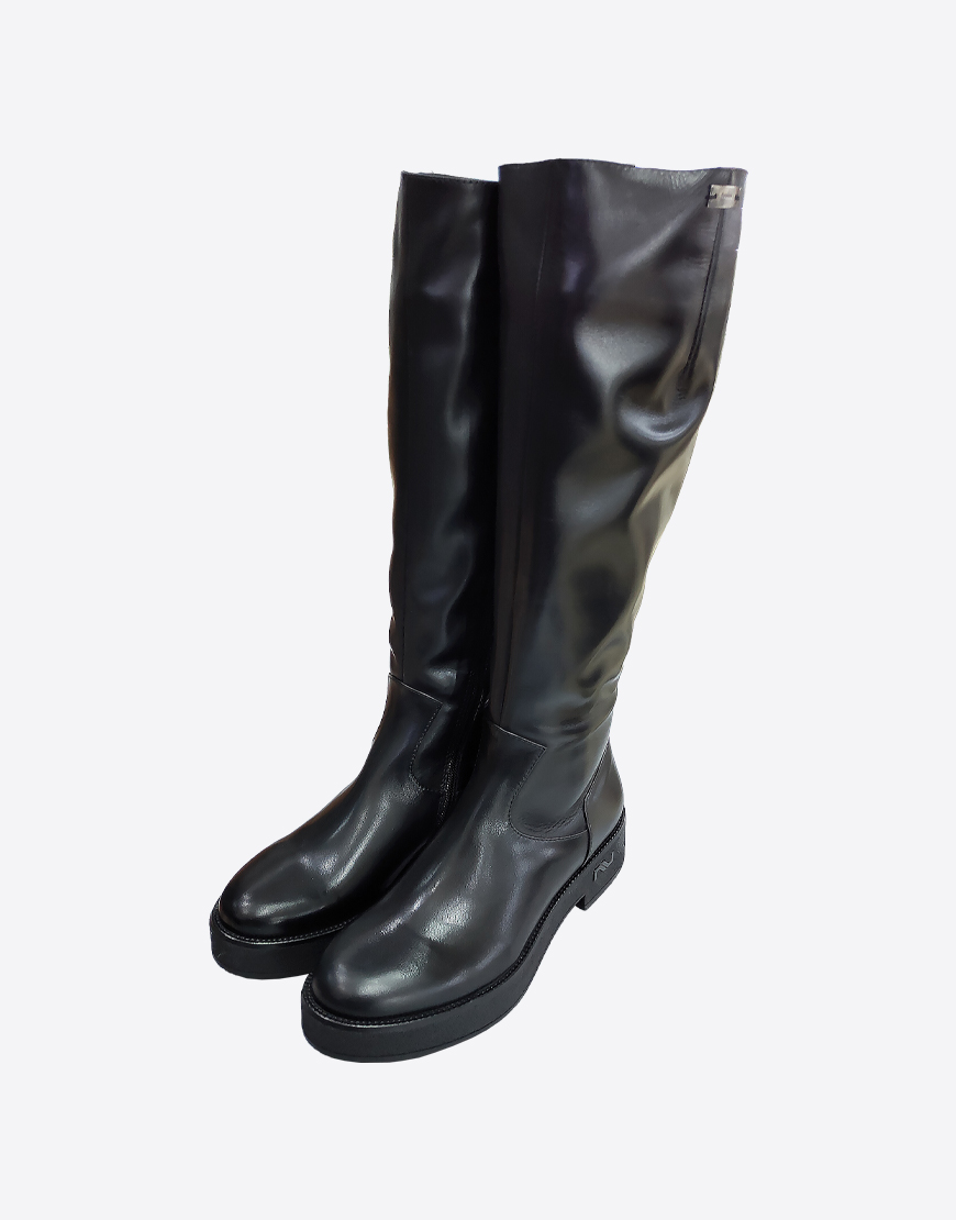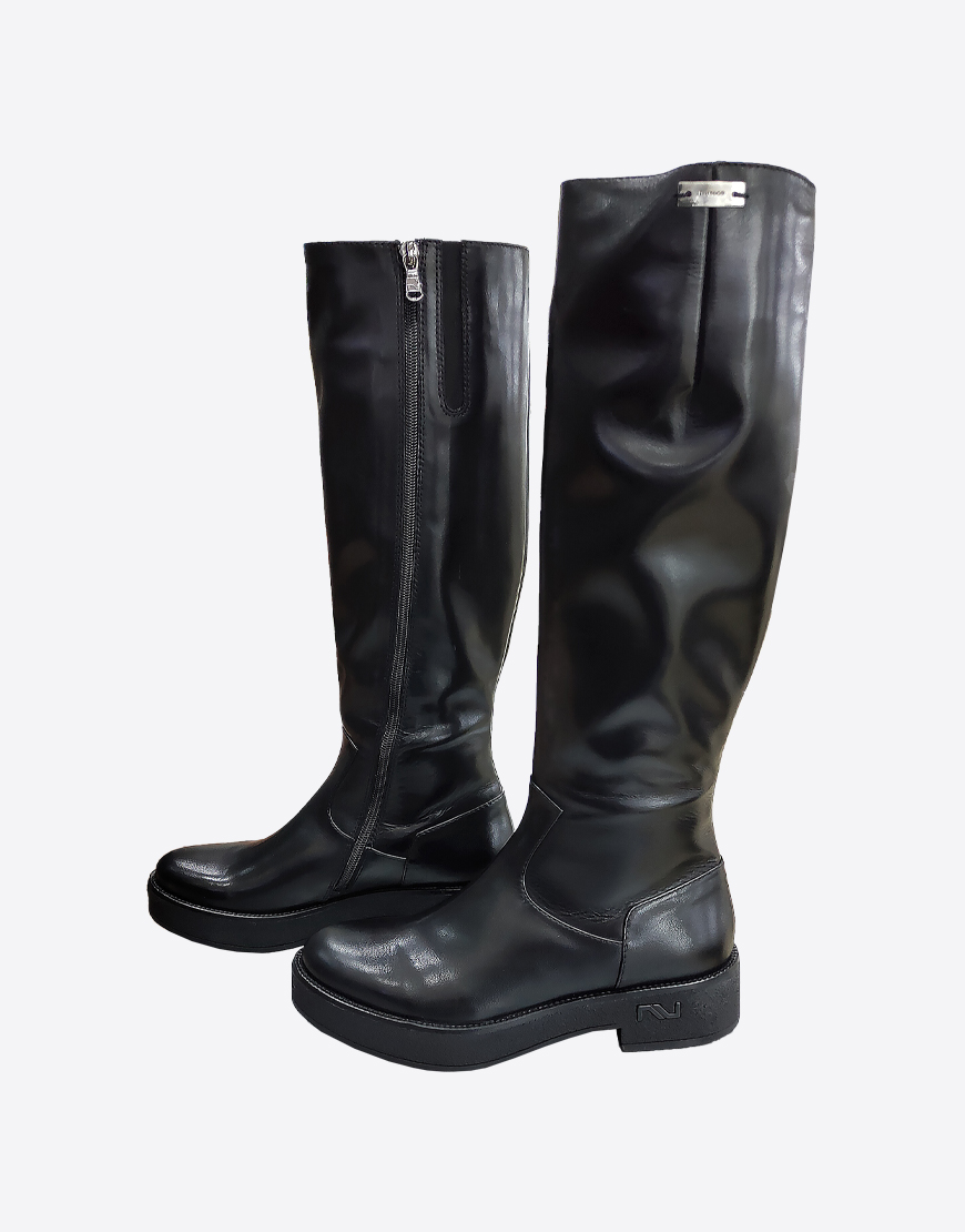 Nursace сапоги в чёрной коже на платформе,на евромеху