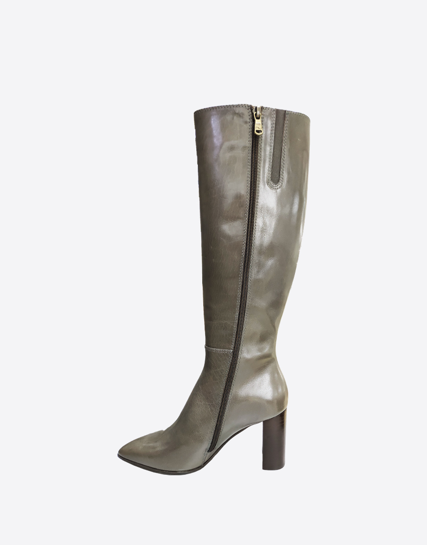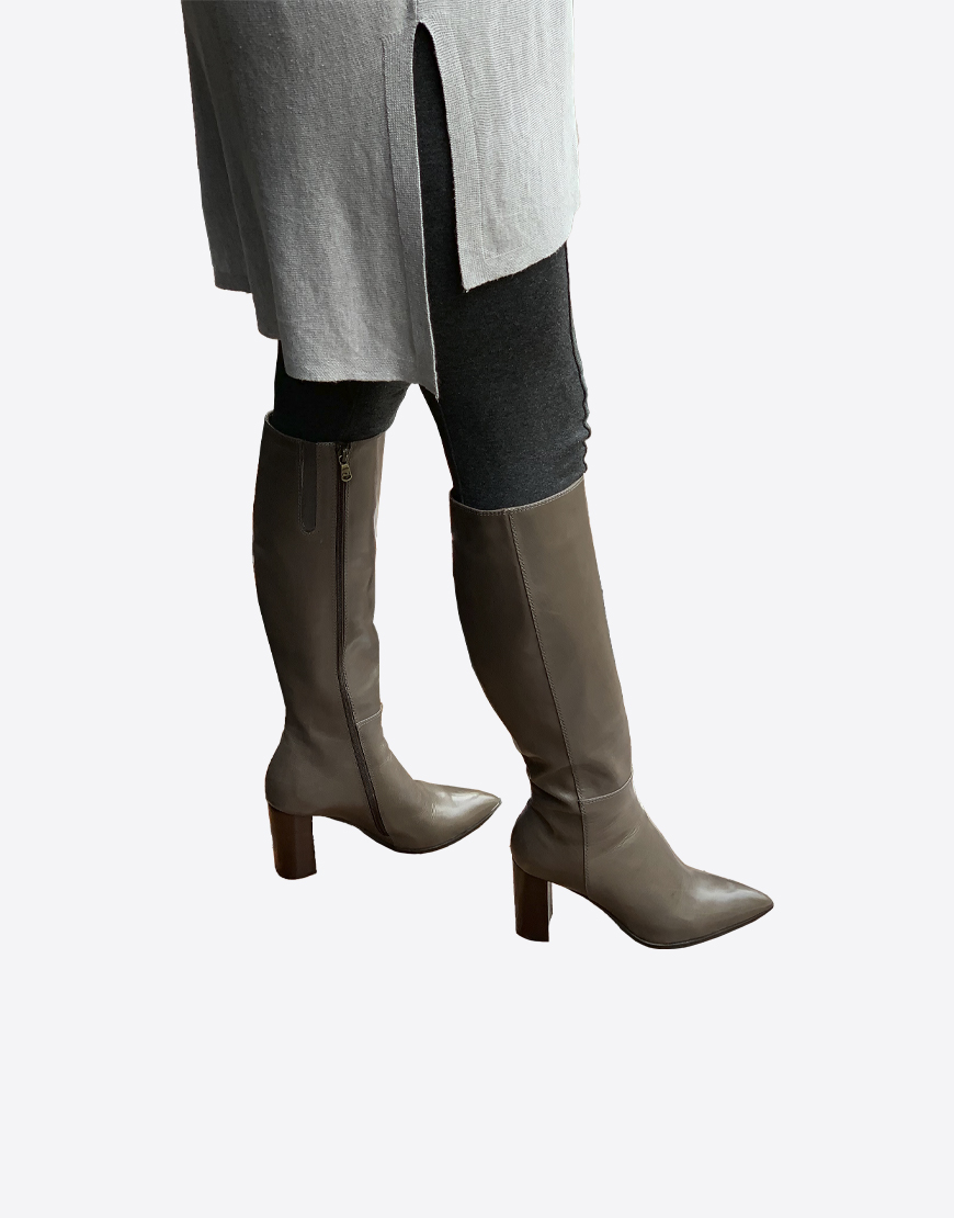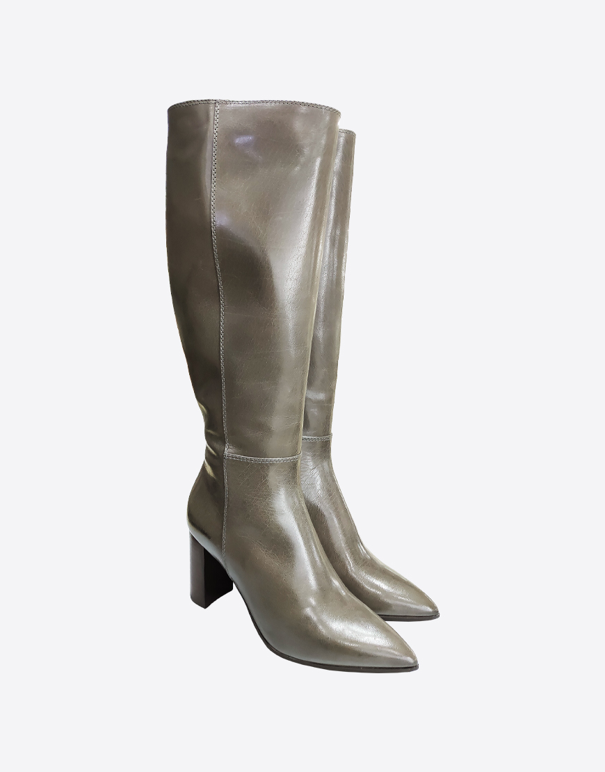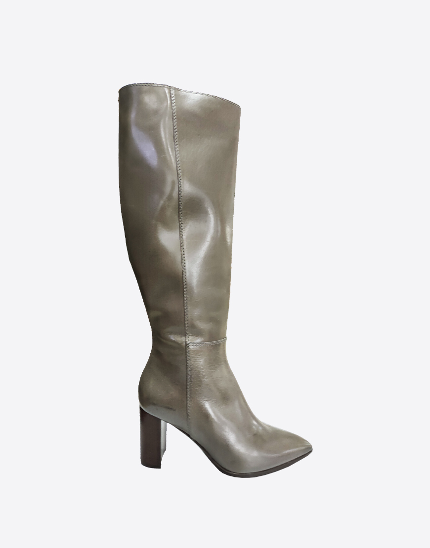 Nursace сапоги в серой коже на евромеху на высоком устойчивом каблуке