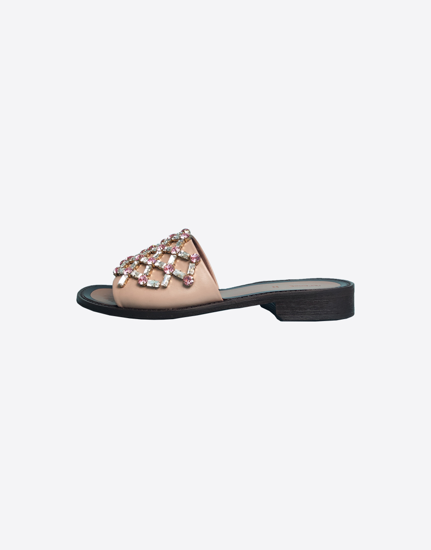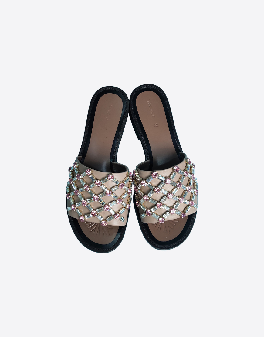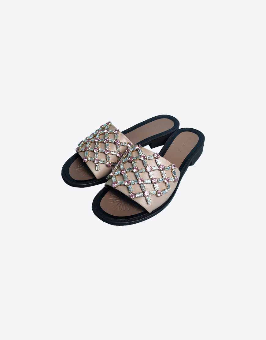 Nursace шлепки в бежевой коже с камнями