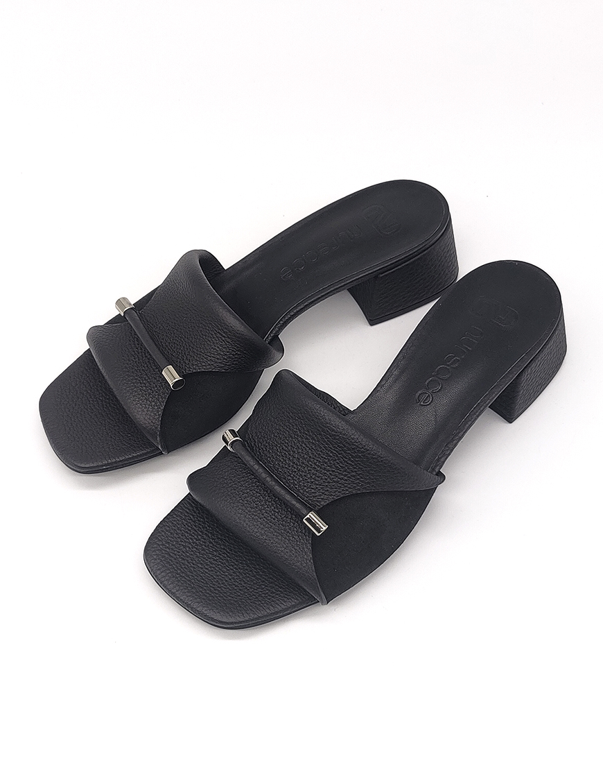 Nursace шлепки в чёрной коже с замшем