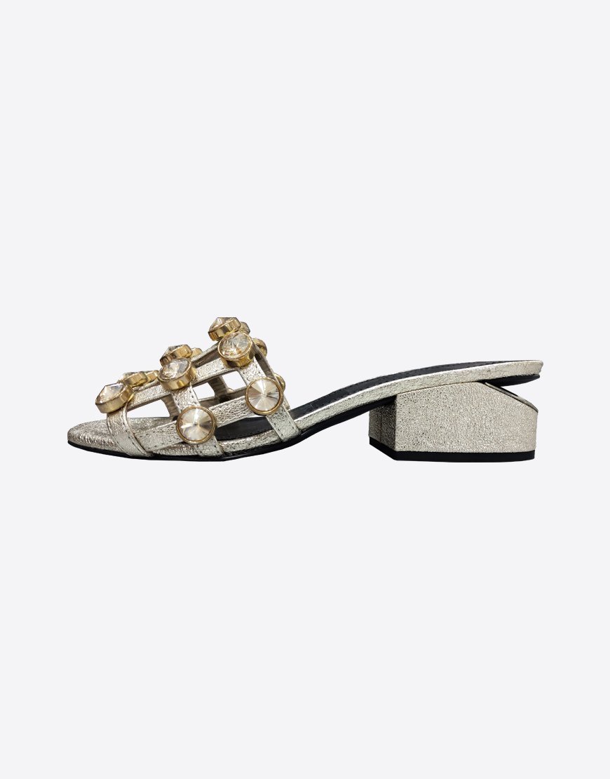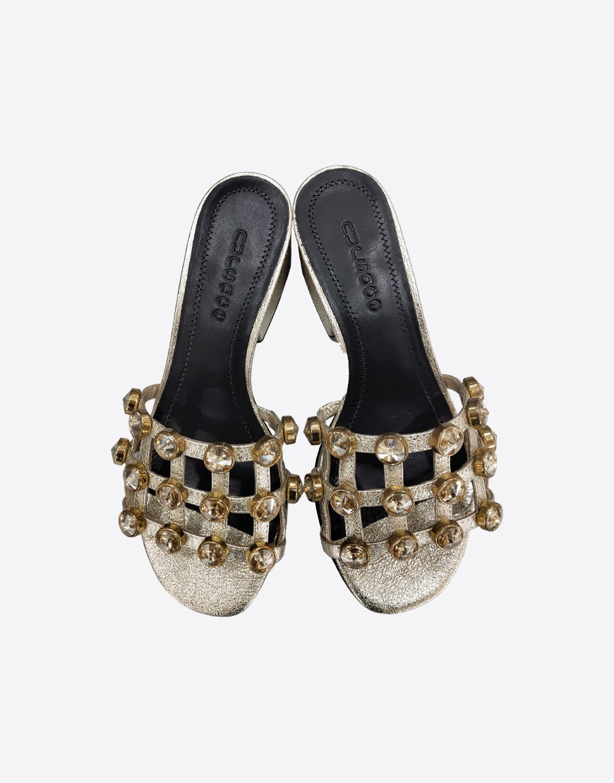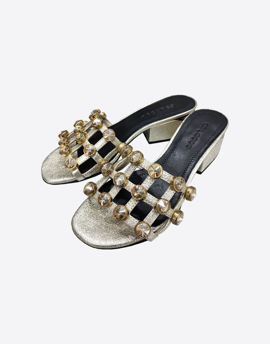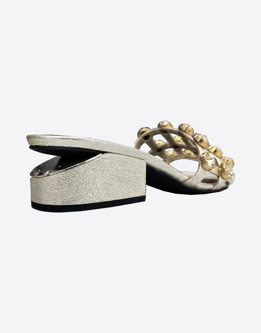 Nursace шлепки в золотой коже на каблуке камни