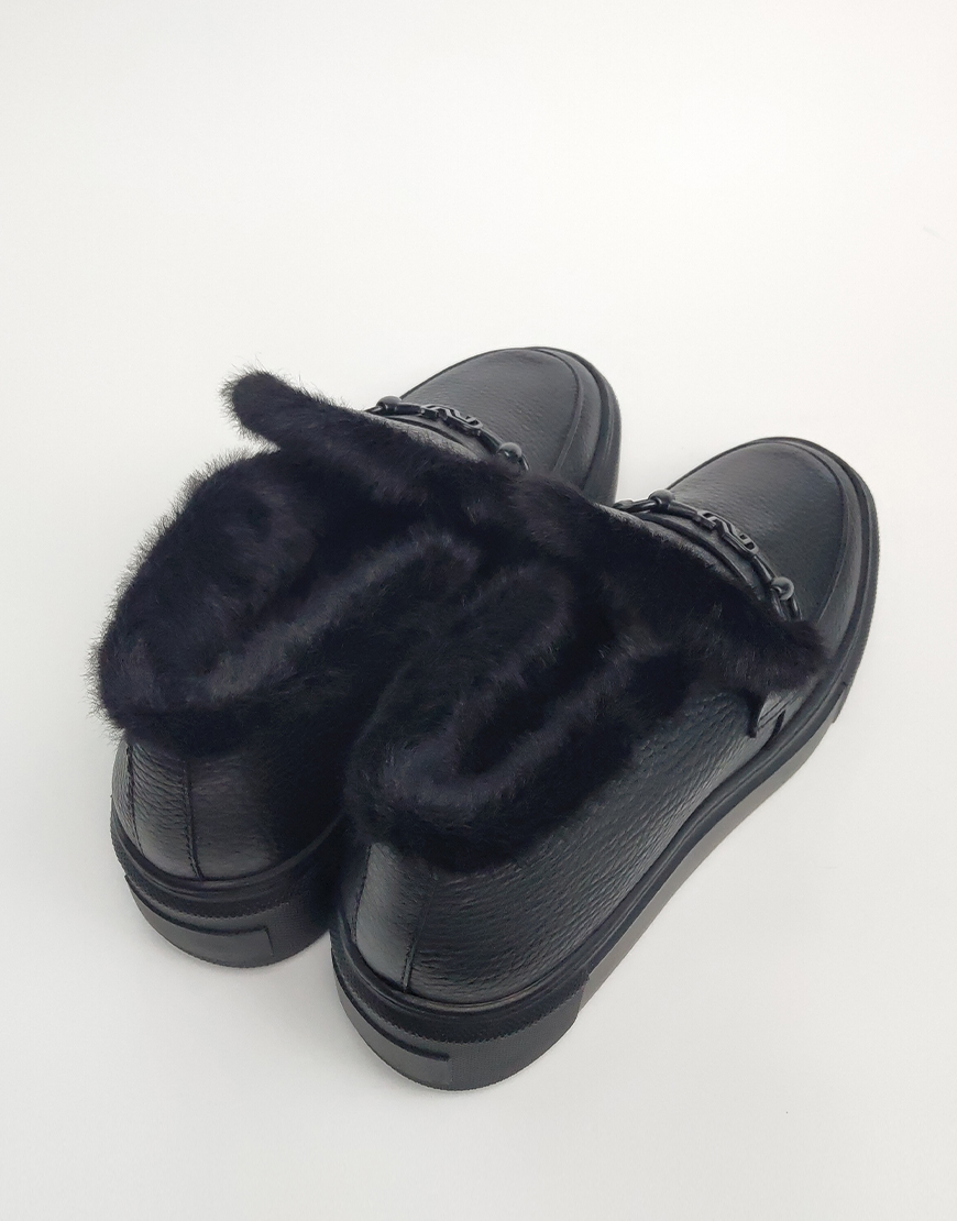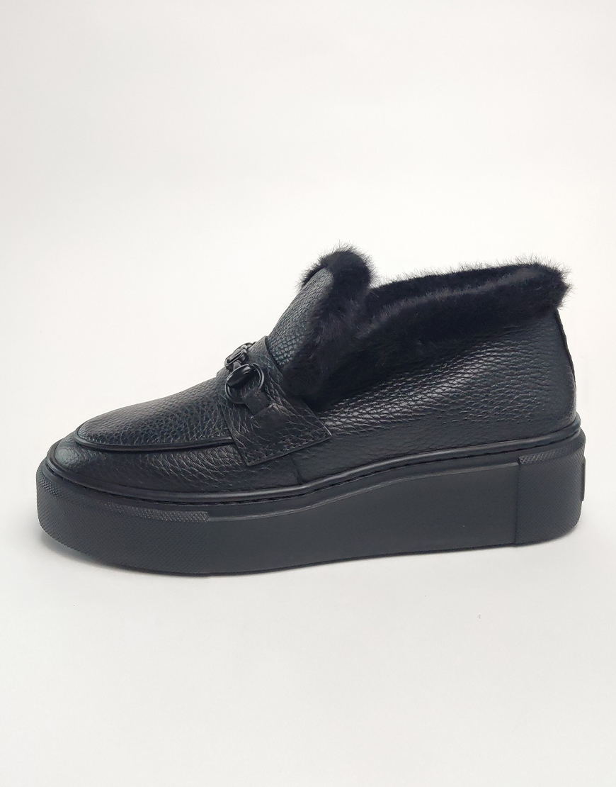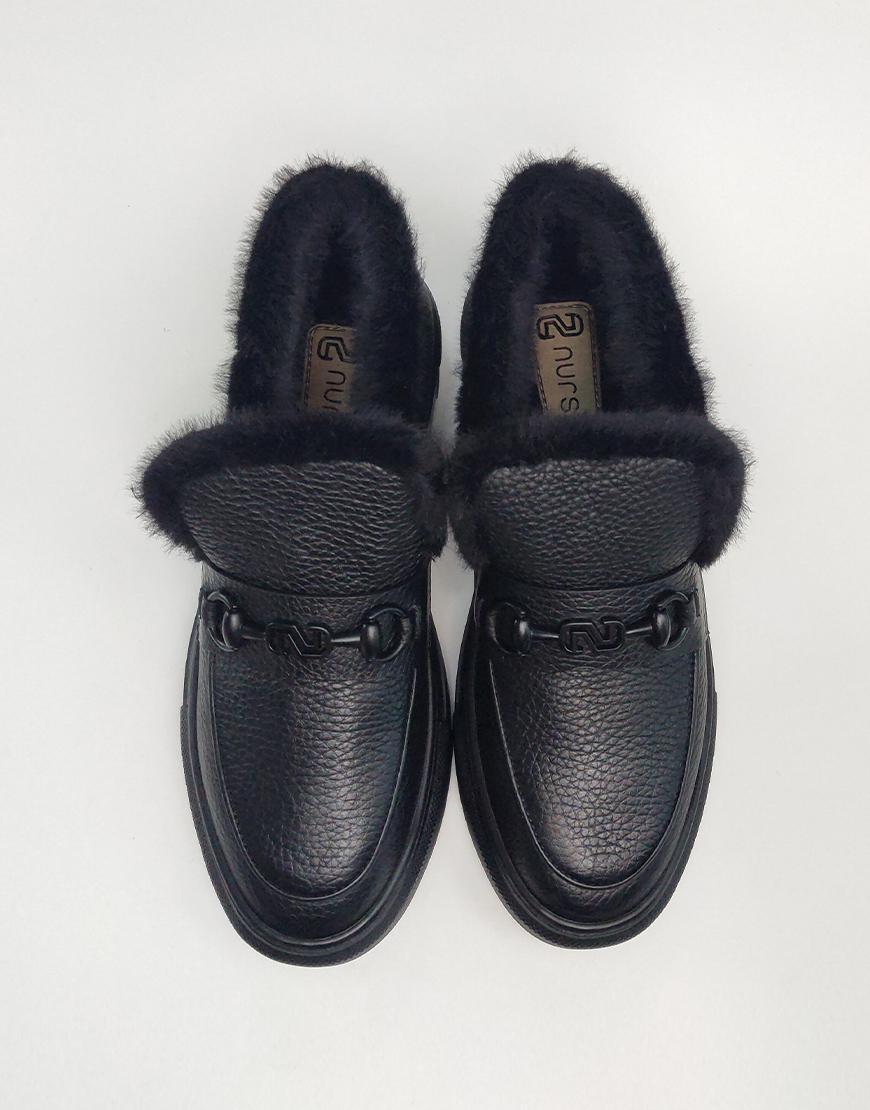 Nursace слипоны в чёрной коже с мехом