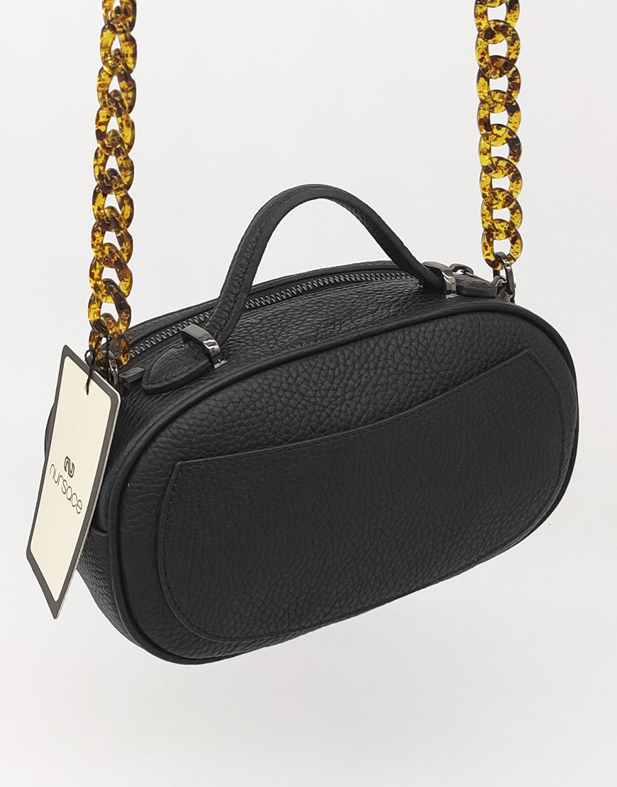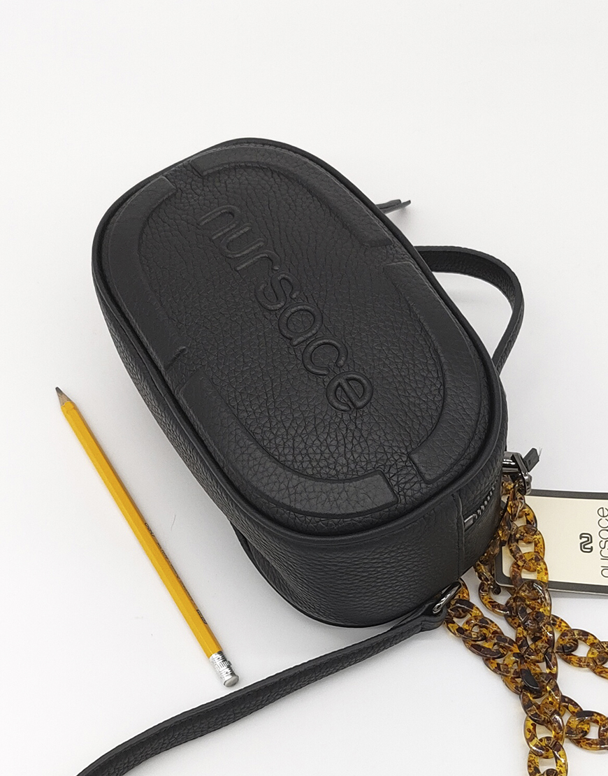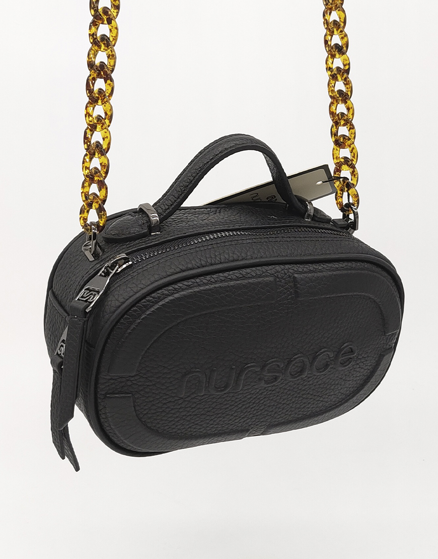 Nursace сумка в чёрной коже , круглой формы с цепью.