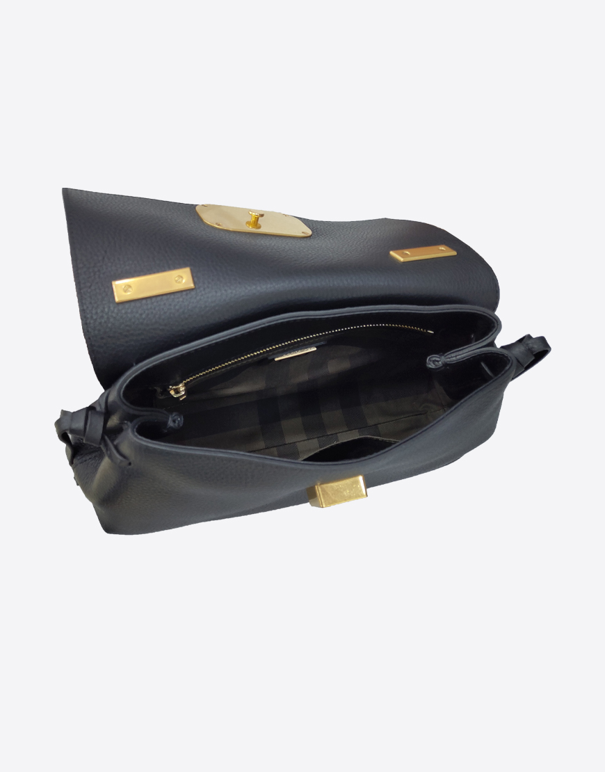 Nursace сумка в чёрной коже, с золотой застёжкой.