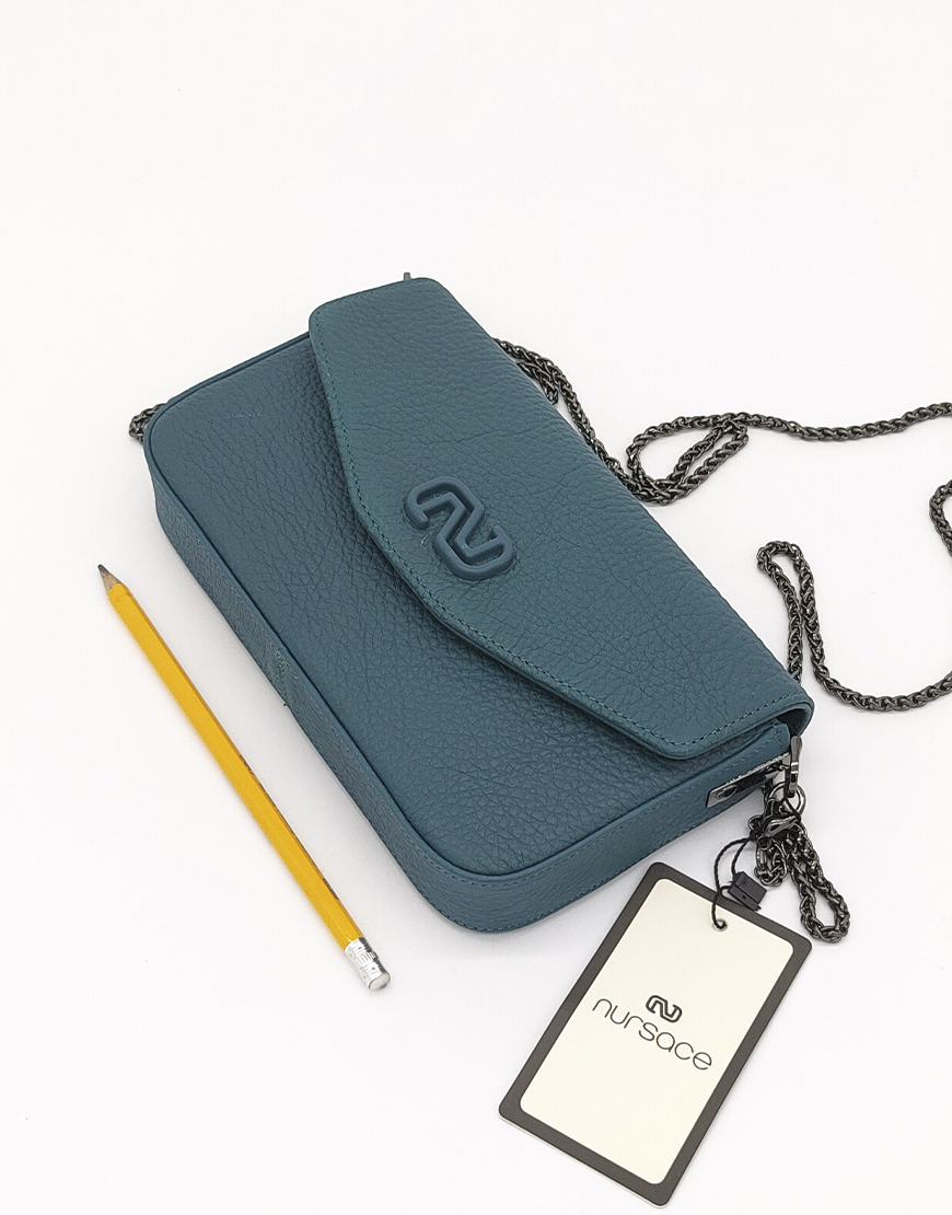 Nursace сумка в изумрудной коже с логотипом.