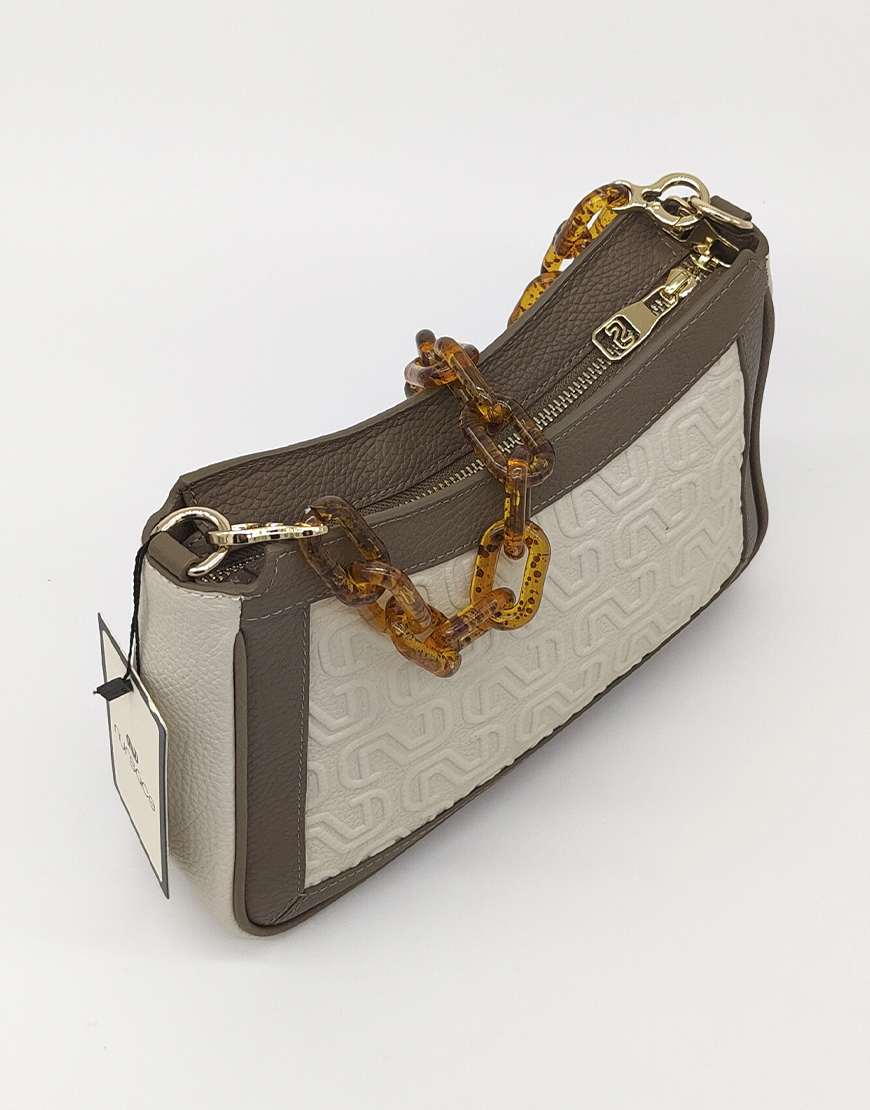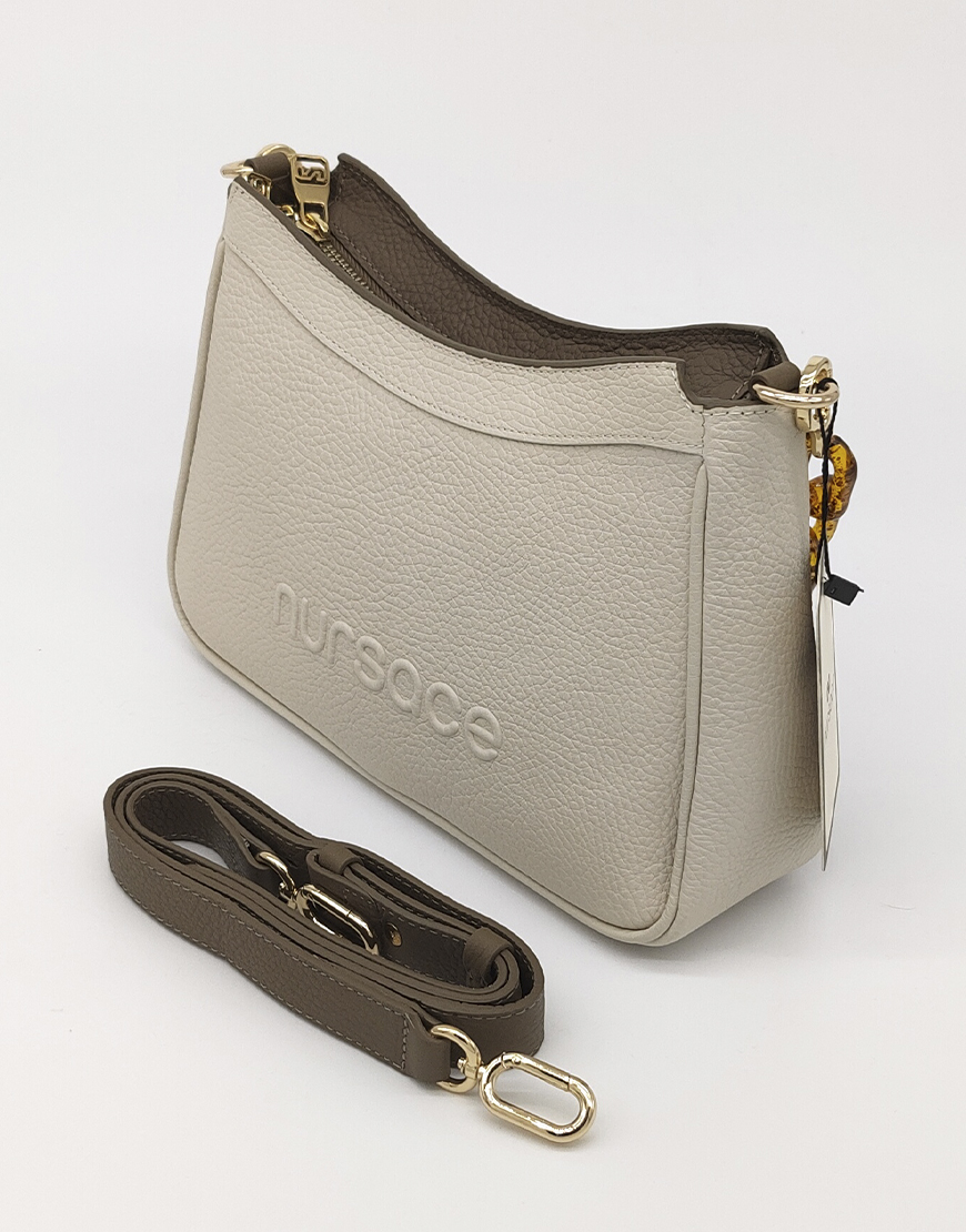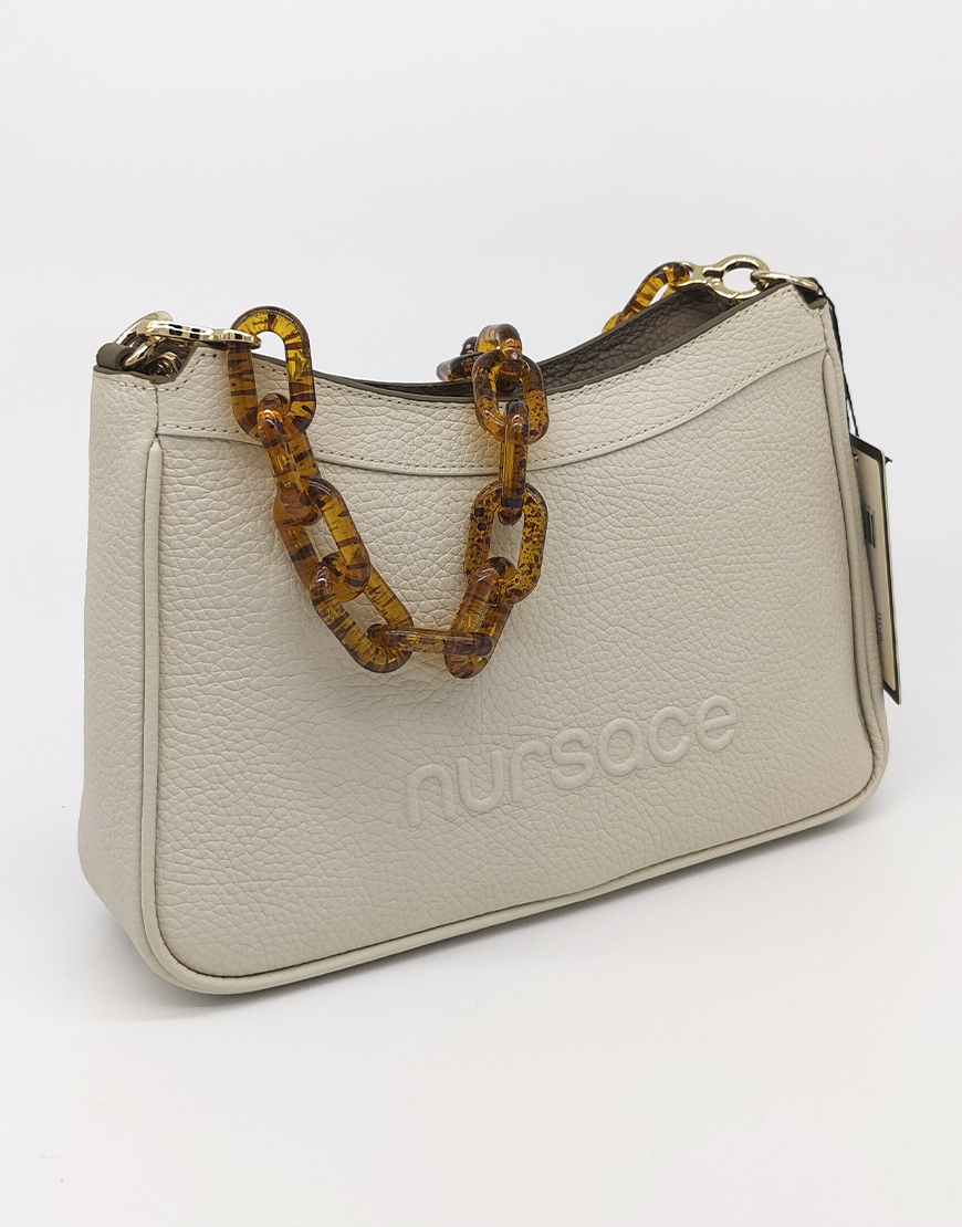 Nursace сумка в молочной коже с бизоновыми вставками и цепью.
