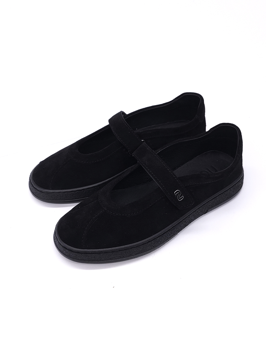 Nursace туфли в чёрной замше на липучках