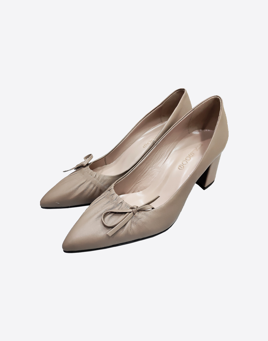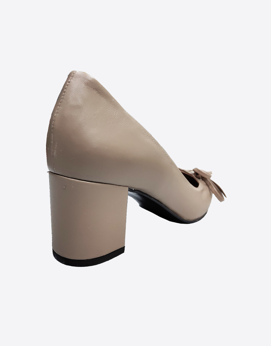 Nursace туфли в бежевой коже с бантом на среднем устойчивом каблуке
