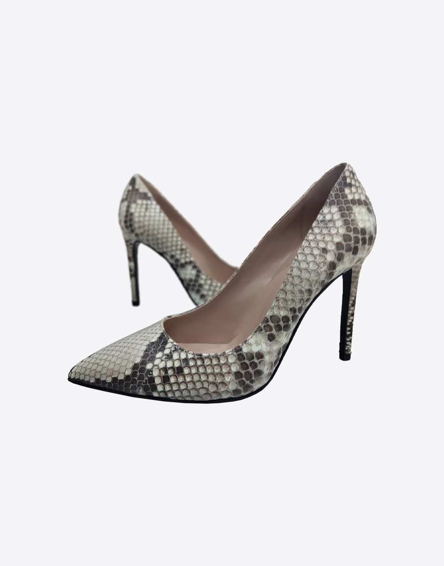 Nursace туфли в бежевом питоне классические на высоком каблуке