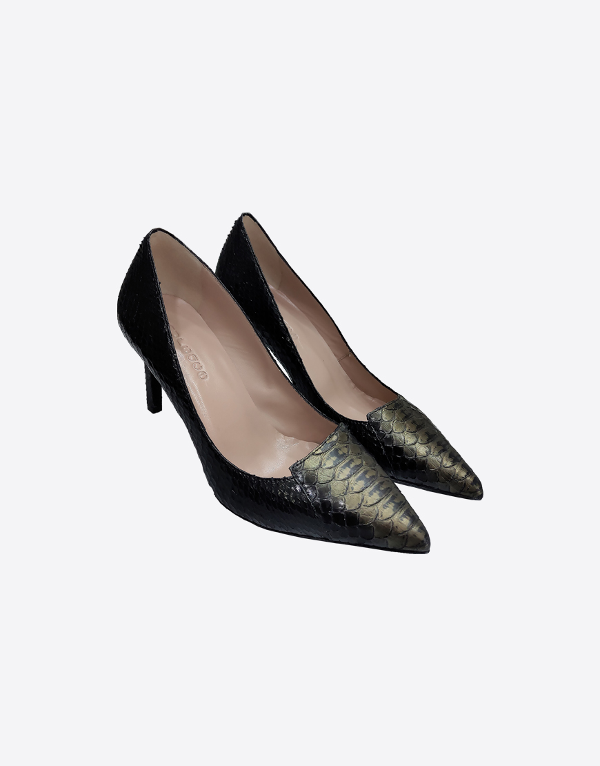 Nursace туфли в чёрно сером питоне классические на среднем каблуке
