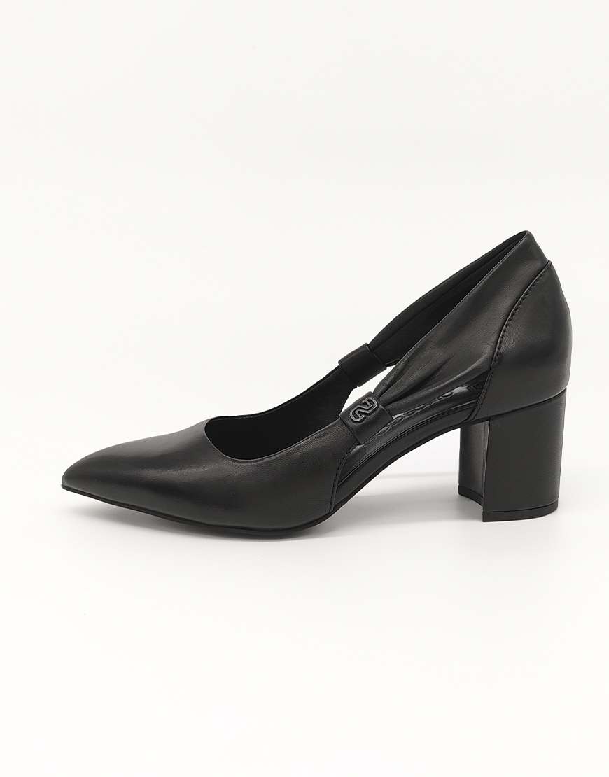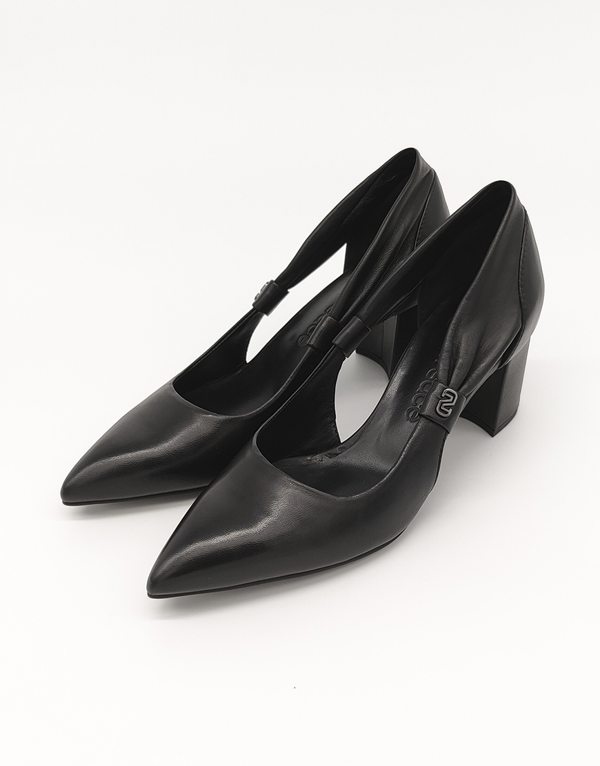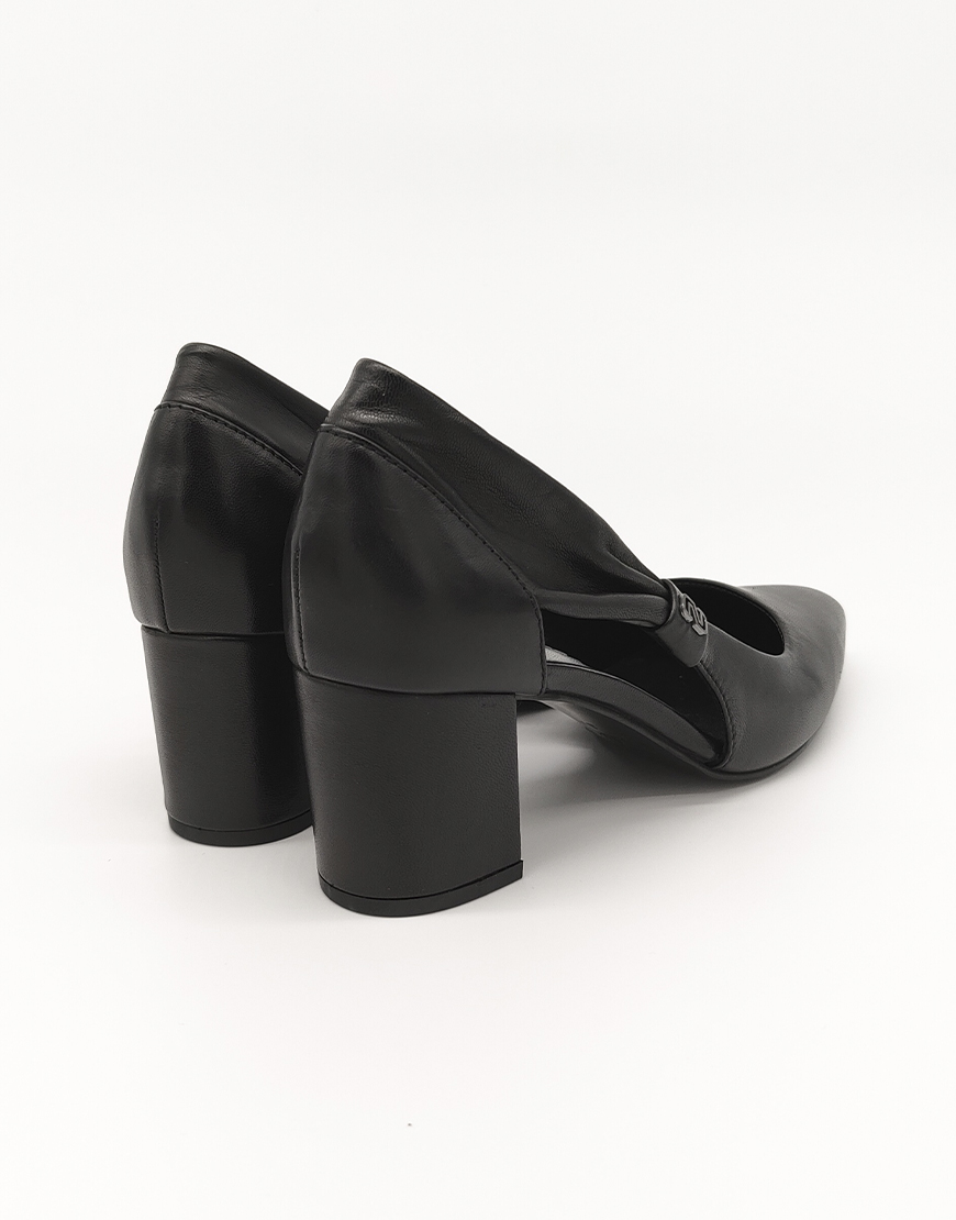 Nursace туфли в чёрной коже на среднем каблуке с открытым боком