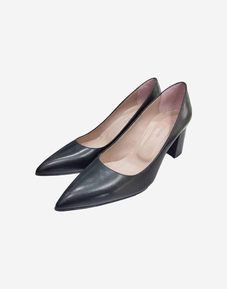 Nursace туфли в чёрной коже на среднем устойчивом каблуке
